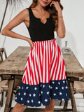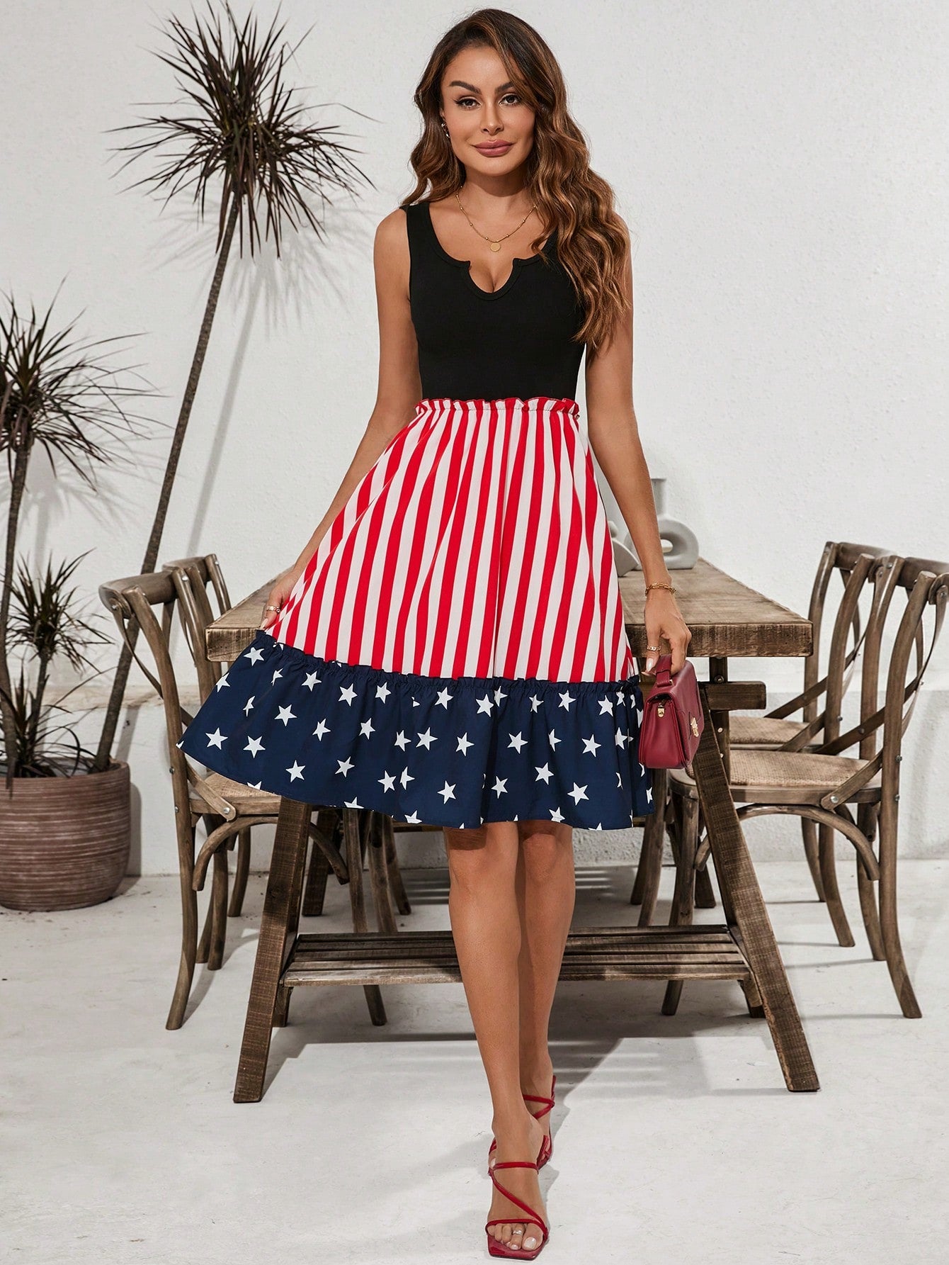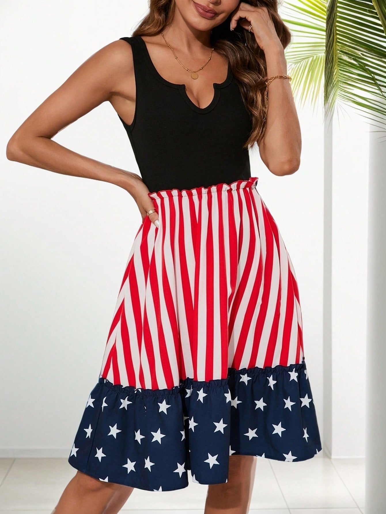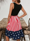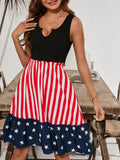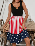 Independence Day Chic: Clasi Patchwork Flag Print Ruffle Pleated Women's Dress