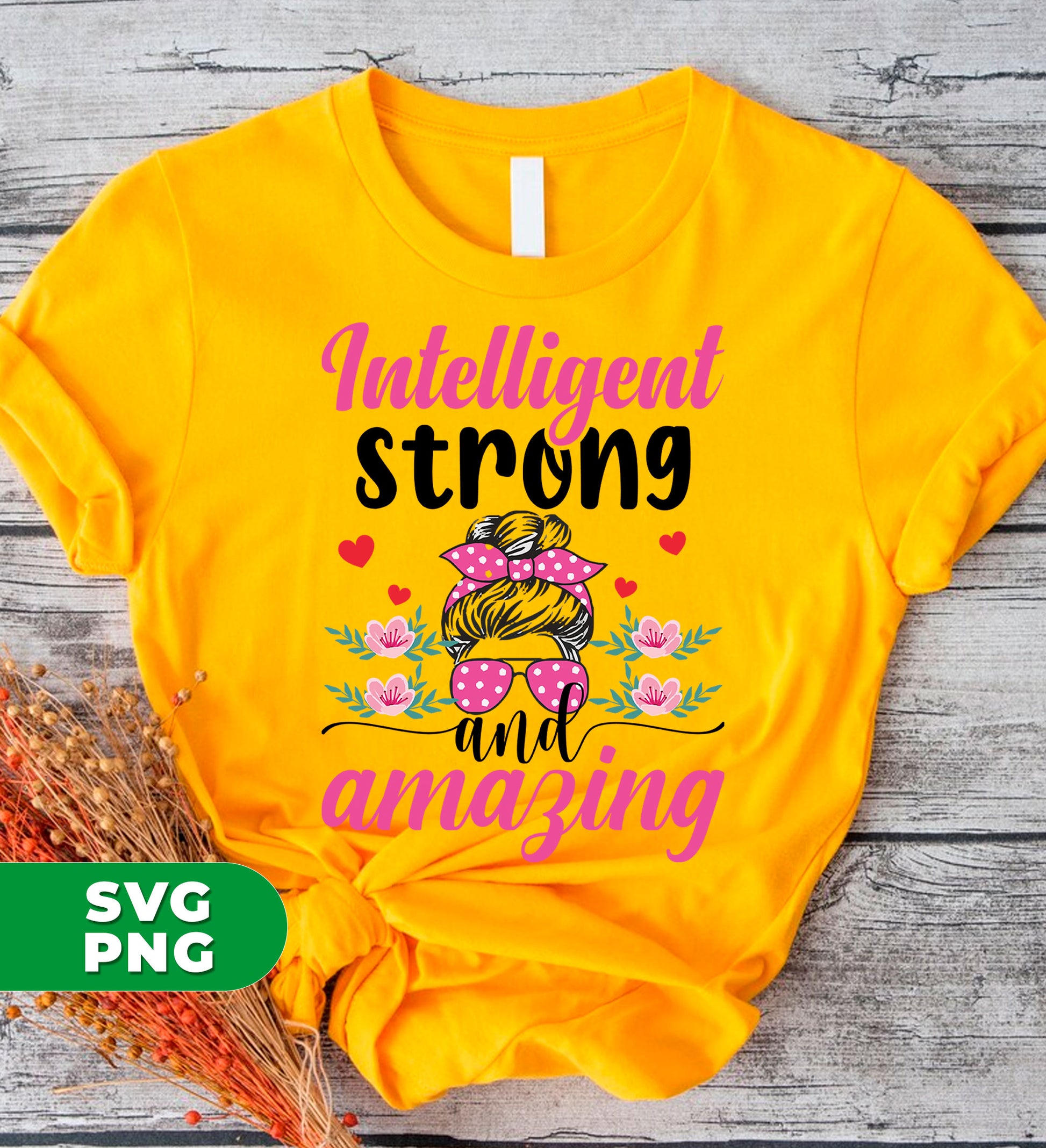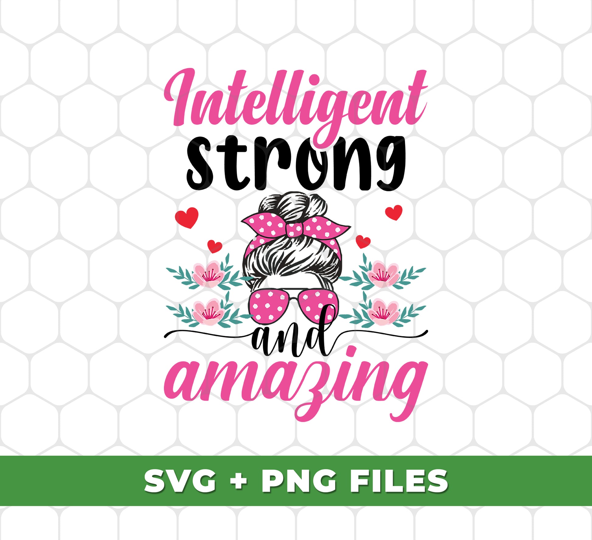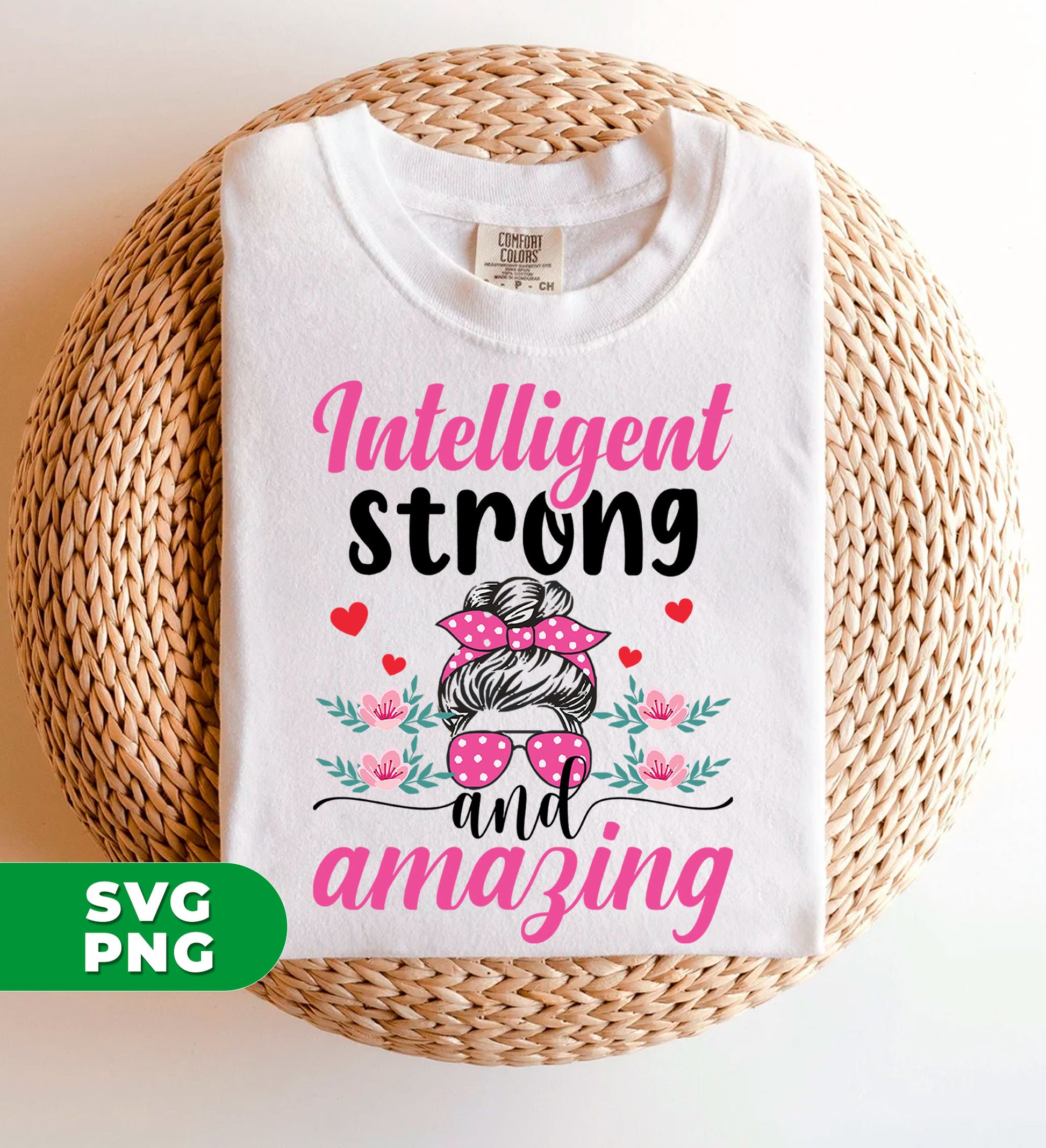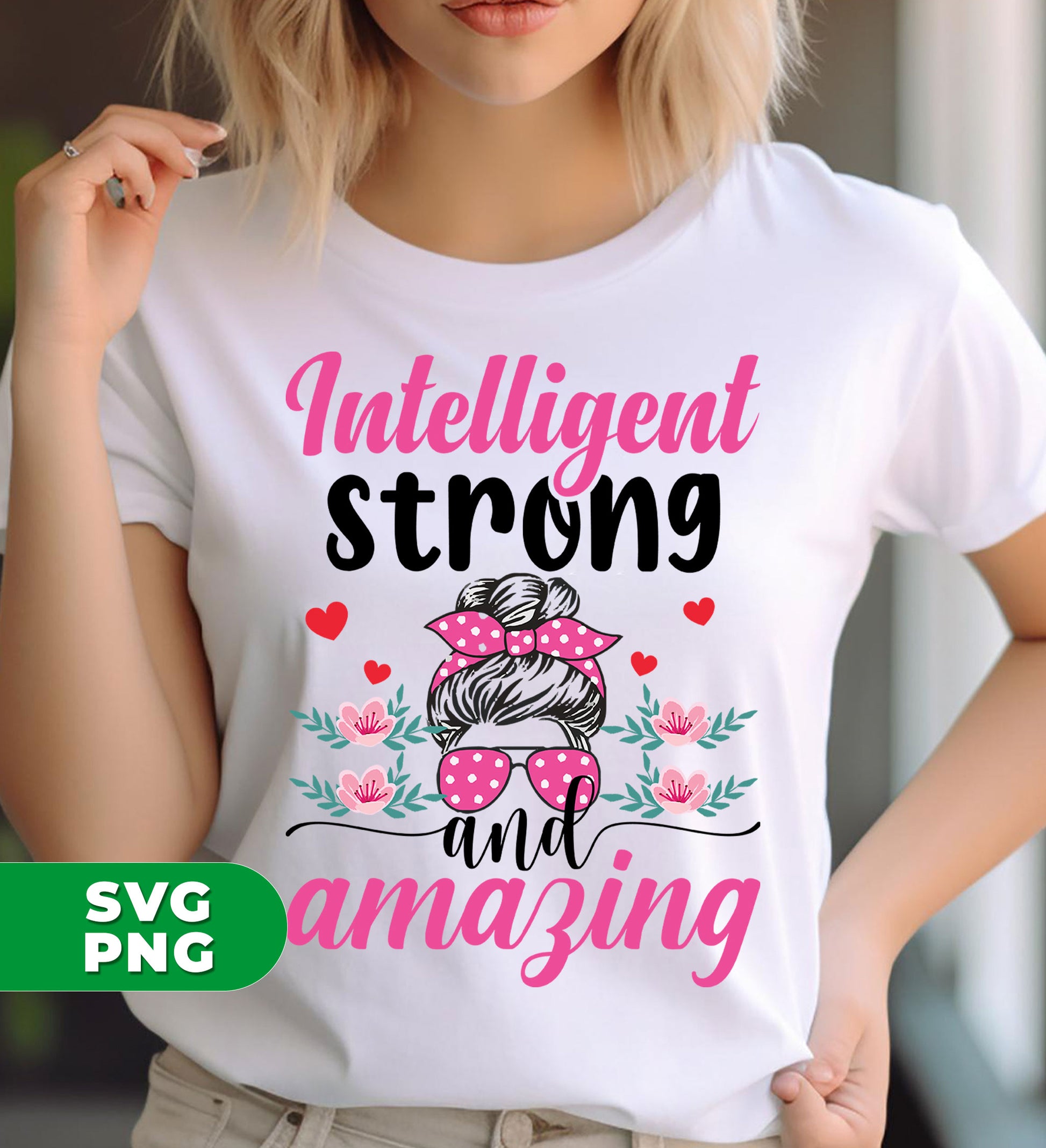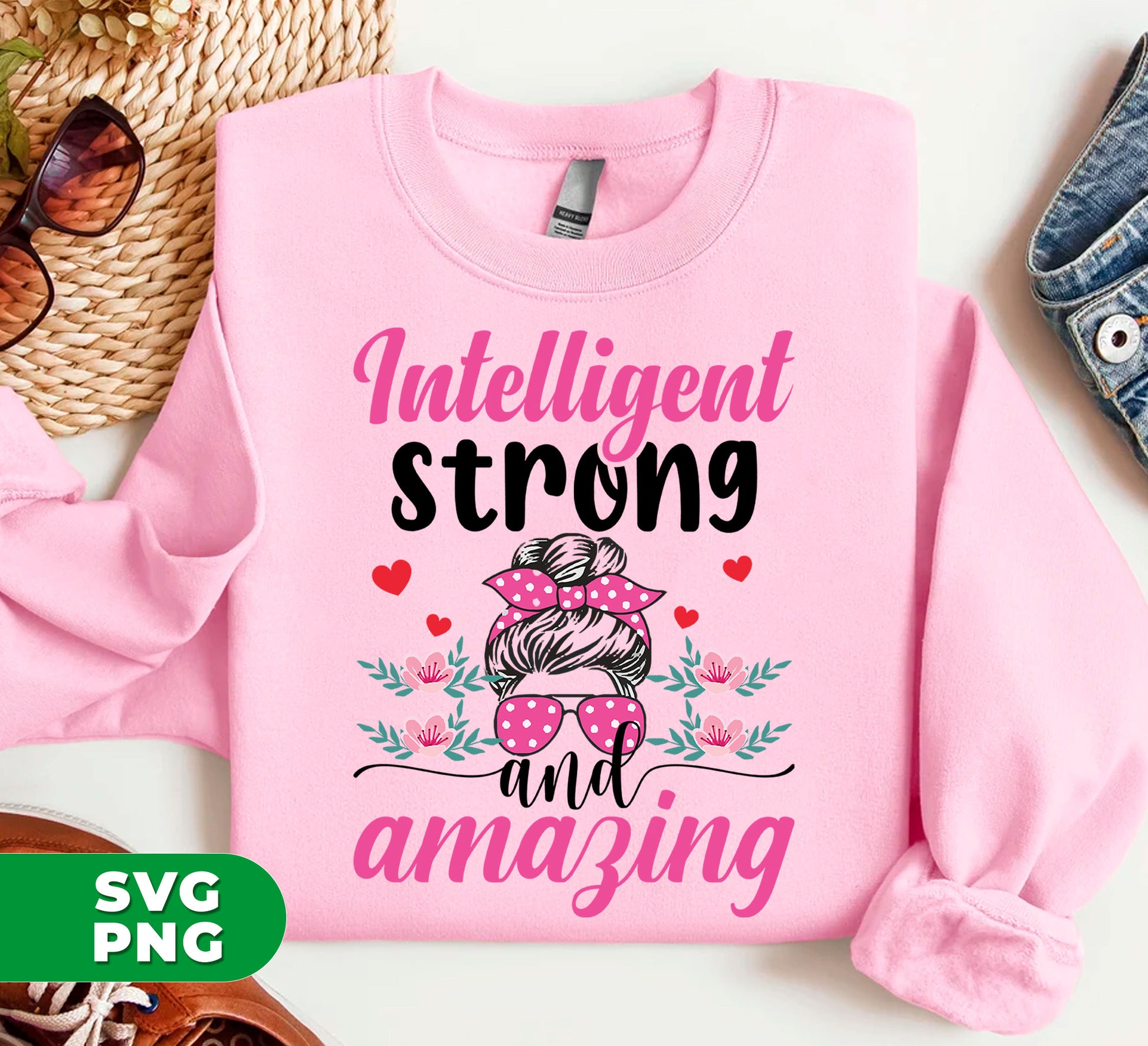 Intelligent Strong And Amazing, Messy Bun Girl, Pink Sunglasses, Digital Files, Png Sublimation