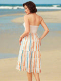 Island Escape: Vintage Striped Strapless Dress for Your Spring Vacation