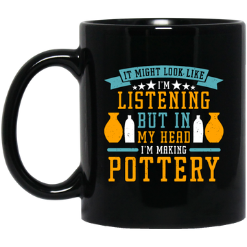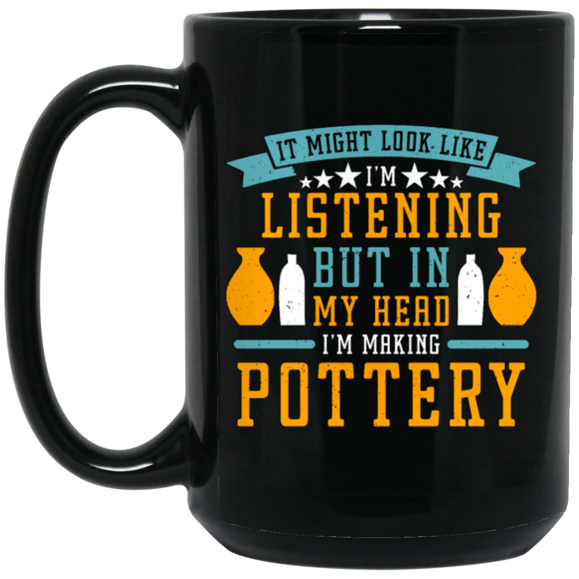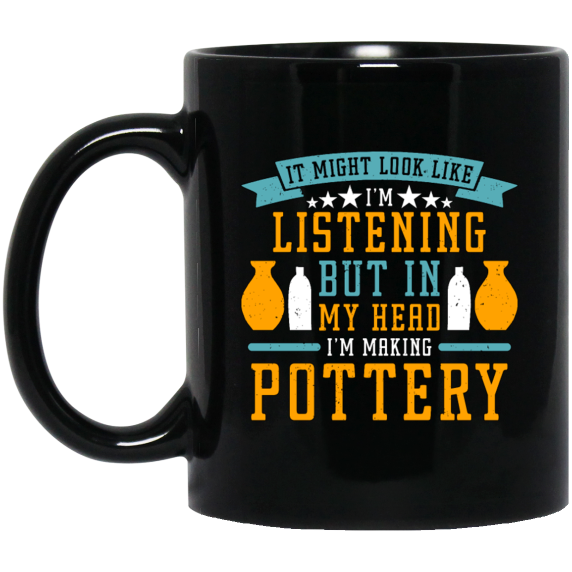 It Might Look Like In Listening But In My Head I Am Making Pottery, Love Pottery Gift Black Mug