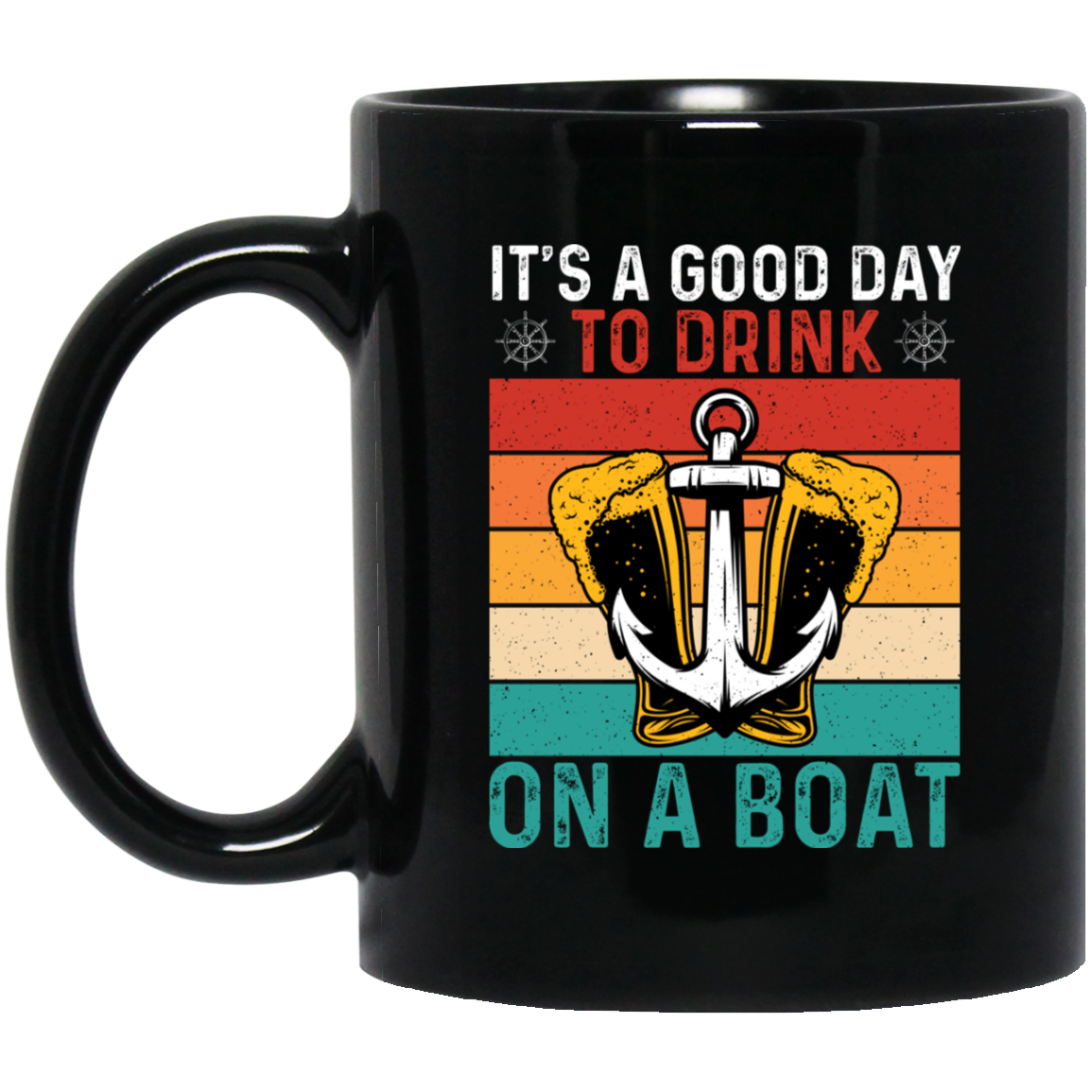 It's A Good Day To Drink On A Boat, Retro Drink, Beer On Boat Black Mug