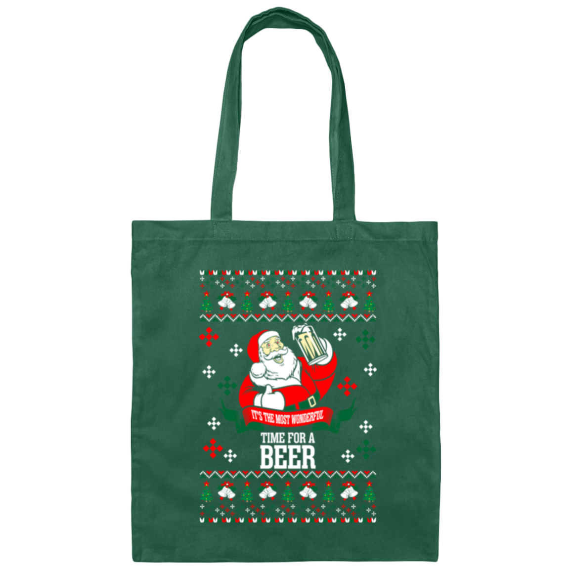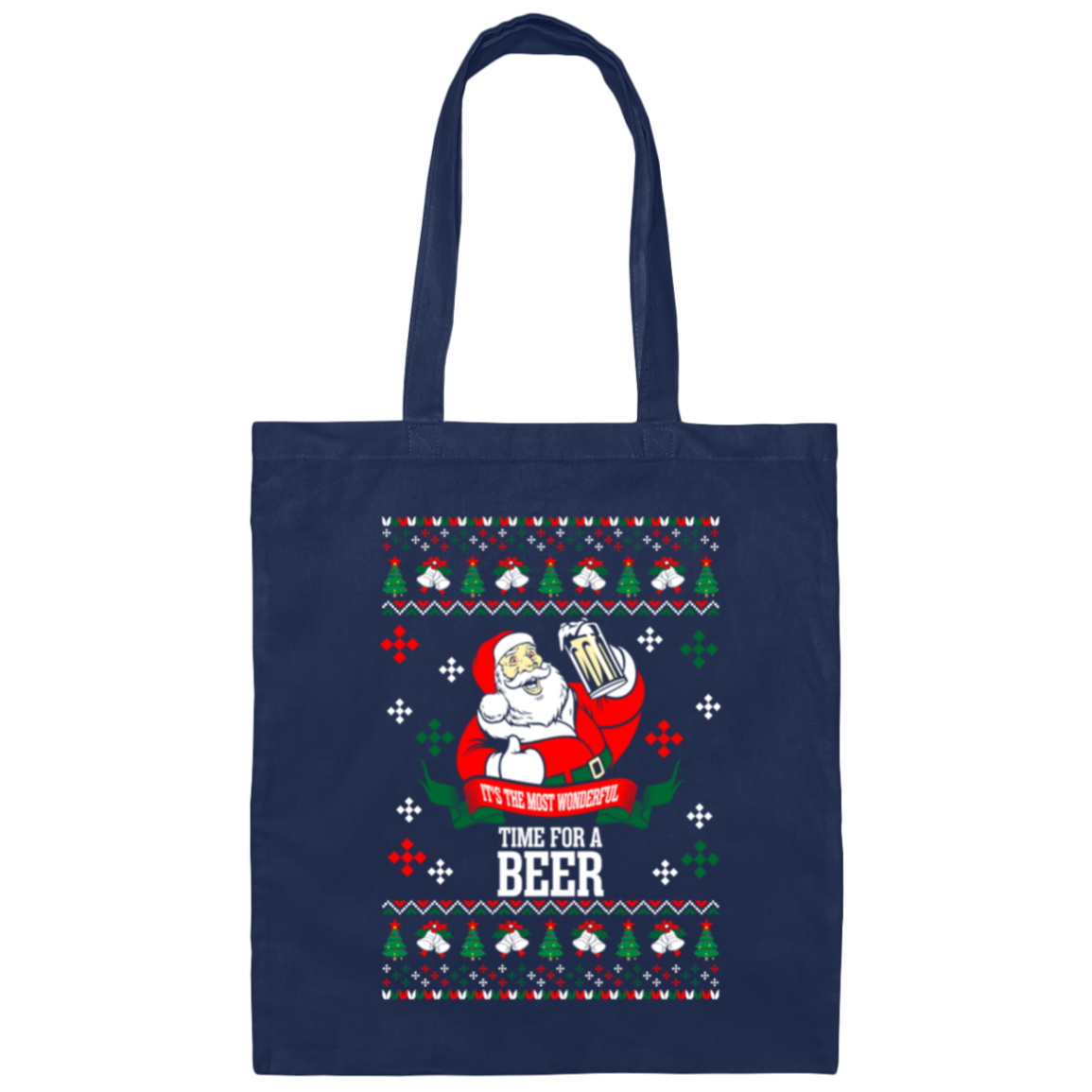 It's the Most Wonderful Time For A Beer Ugly Christmas Canvas Tote Bag