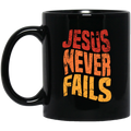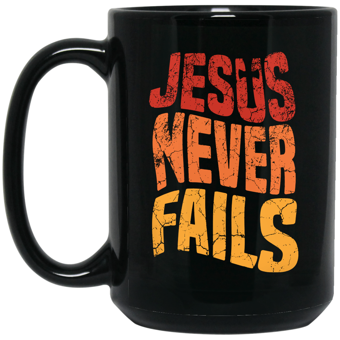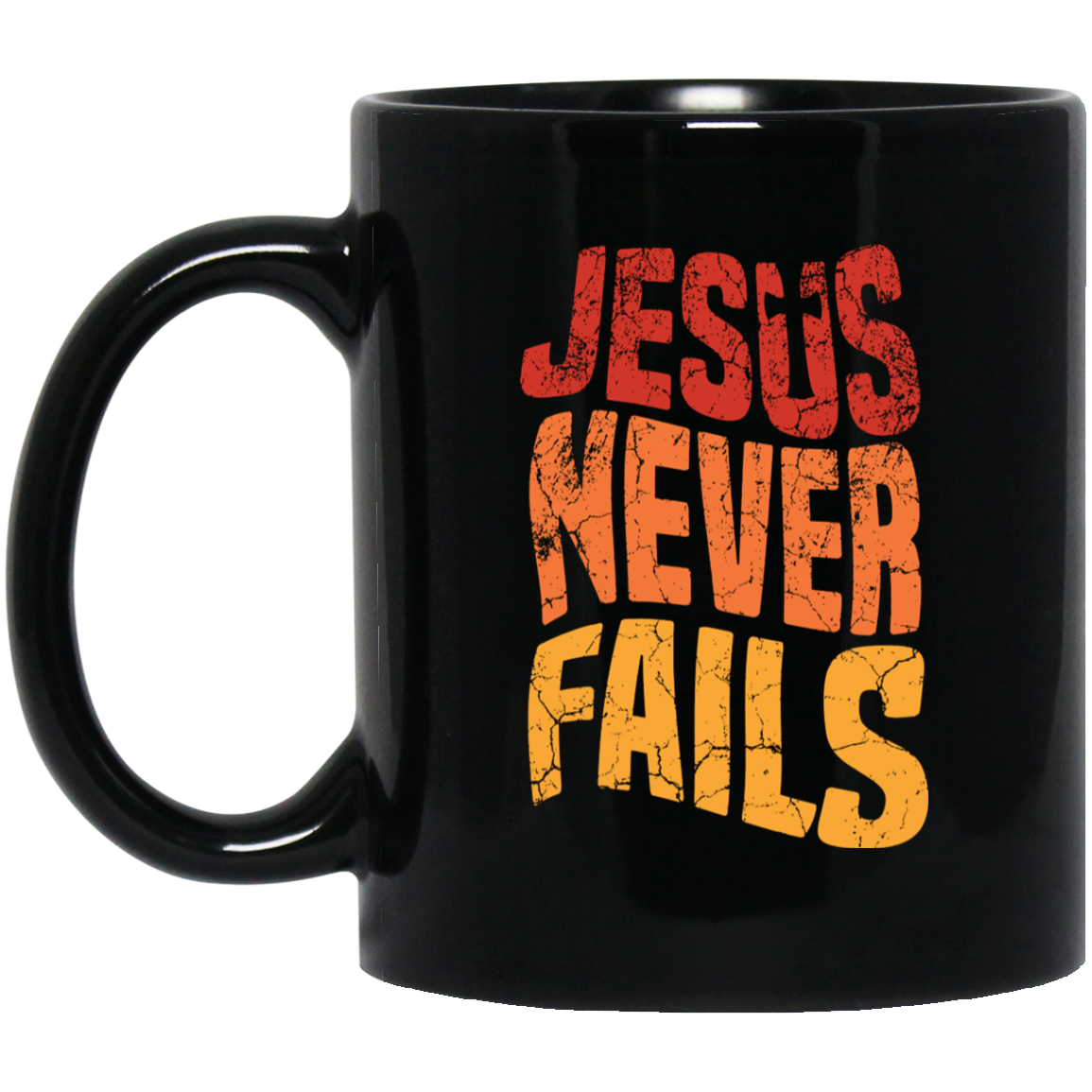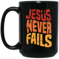 Jesus Never Fails, Jesus Cross, Retro Jesus, Christ Cross Black Mug