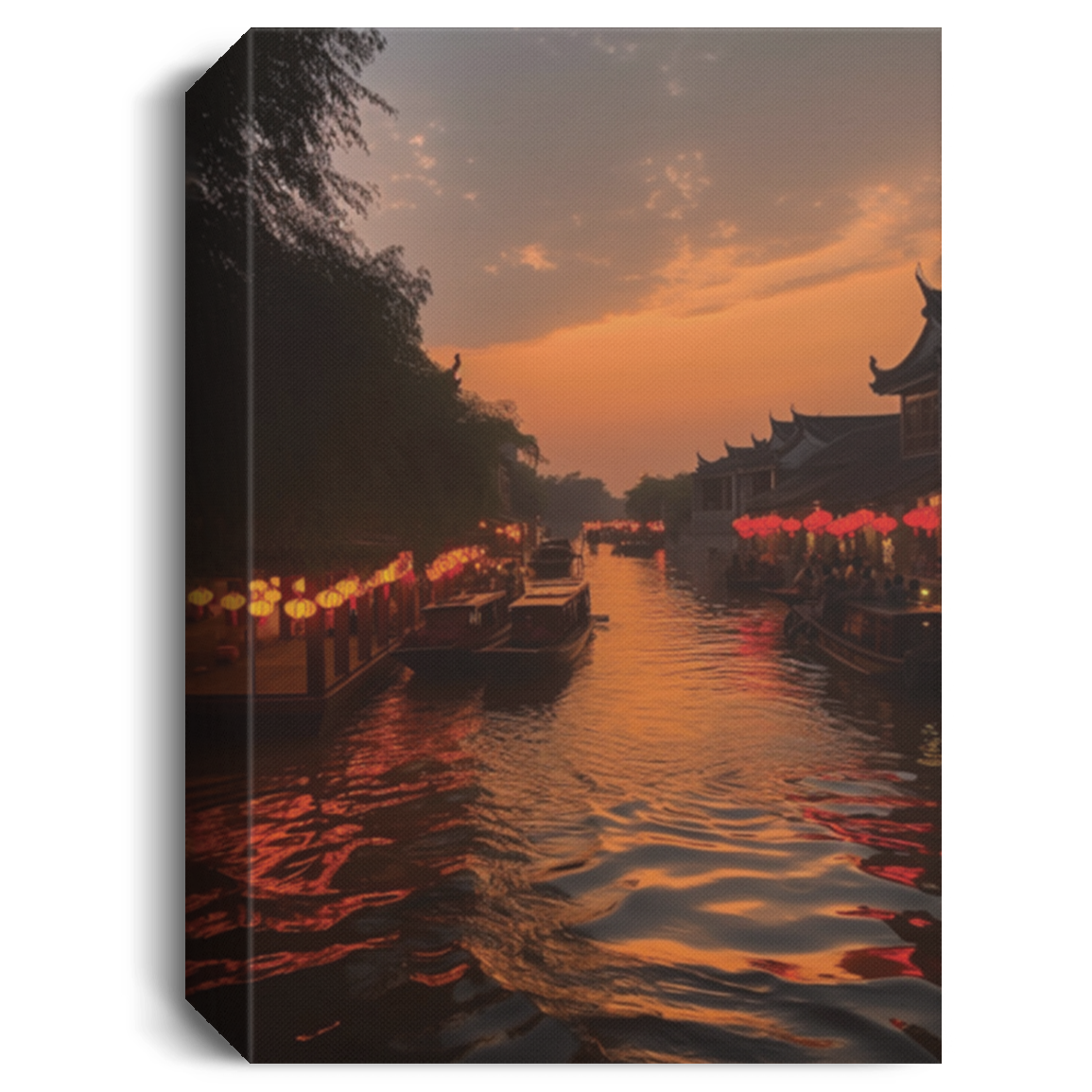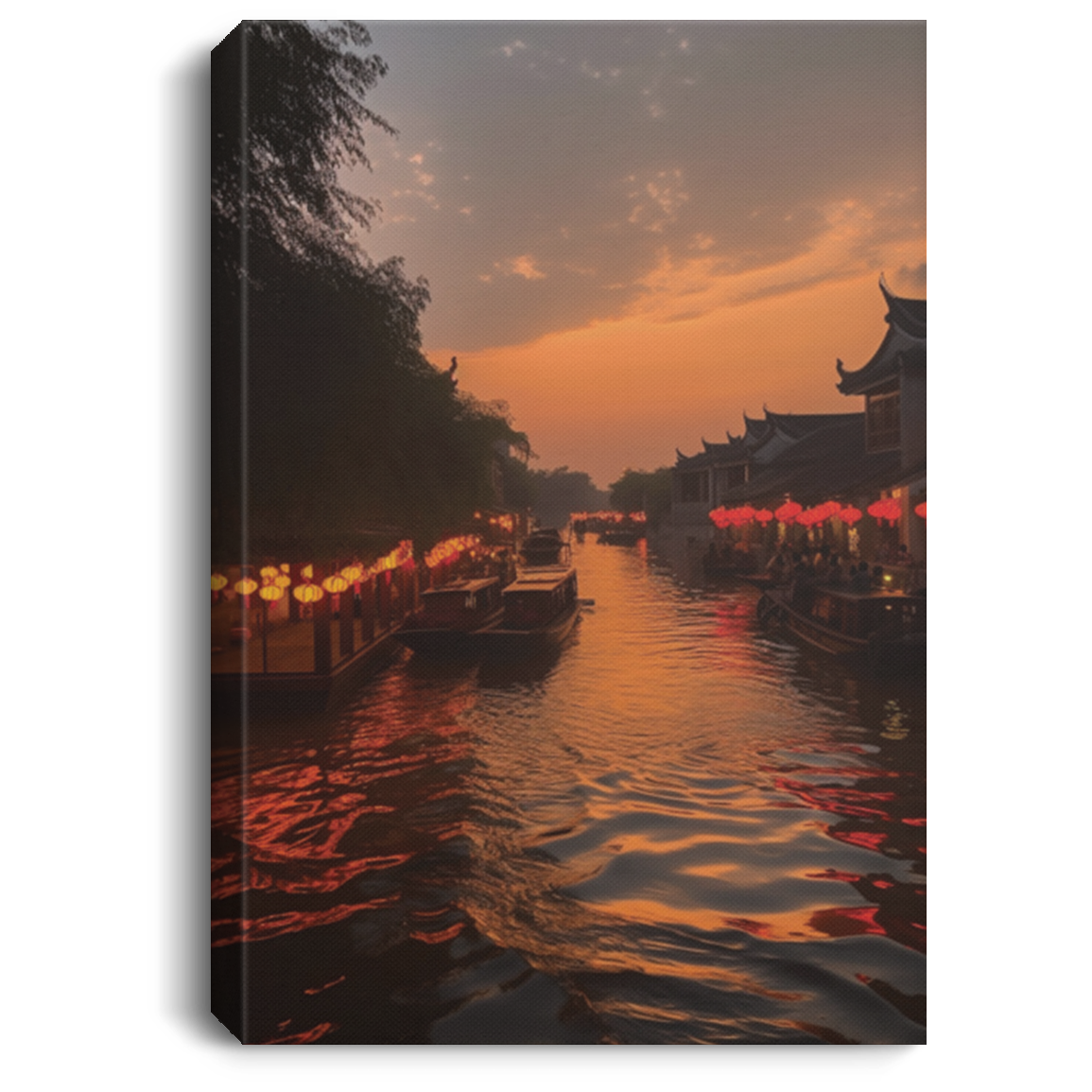 Jiangnan Town, Small Bridges, Flowing Water, Sunset, Lanterns, Boats And Prosperity Canvas