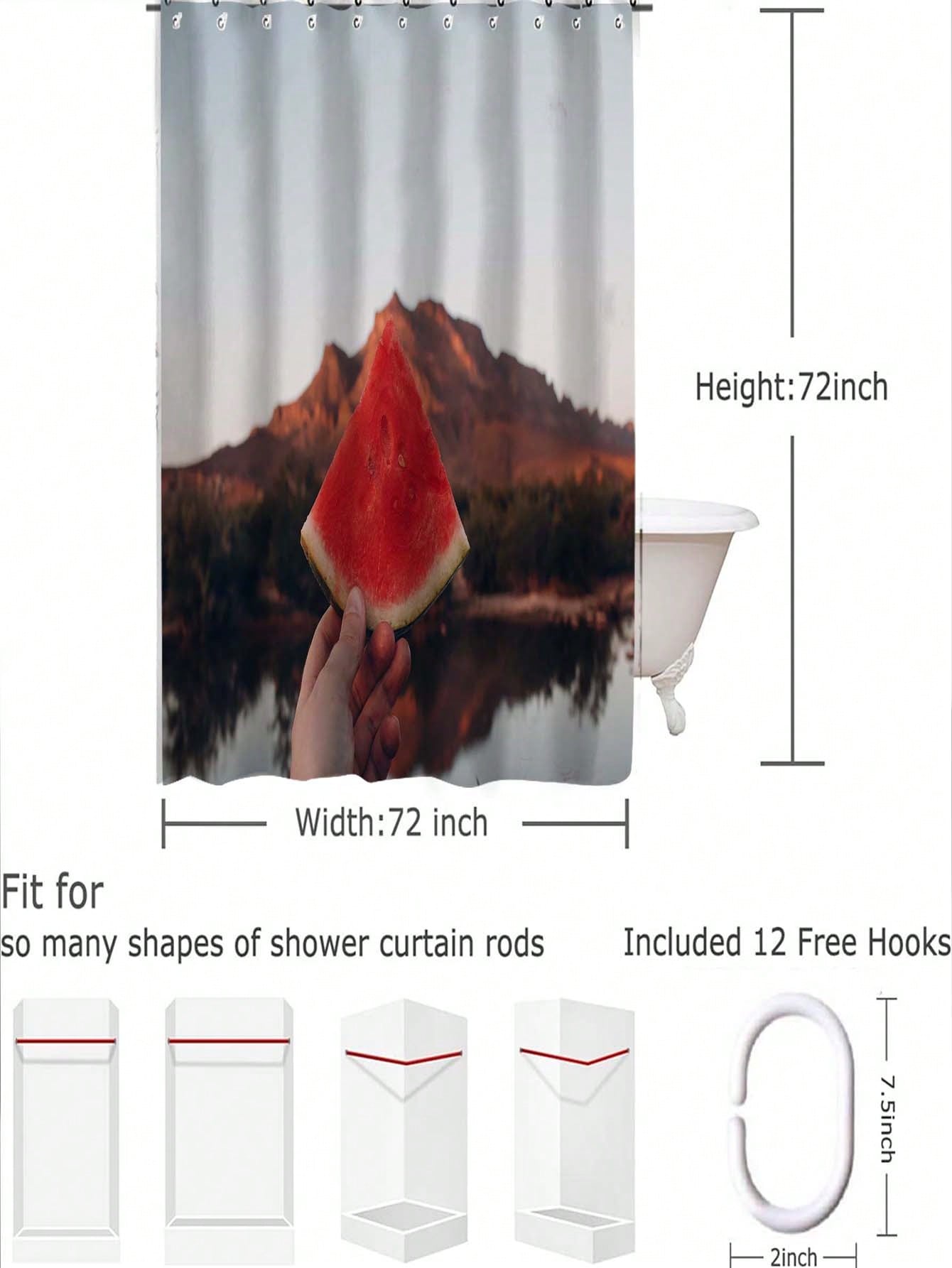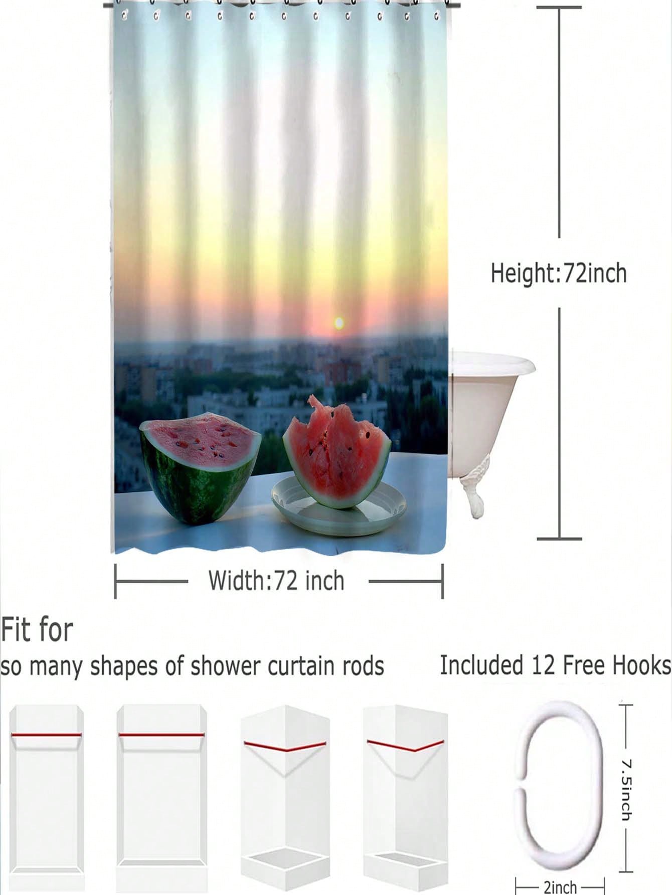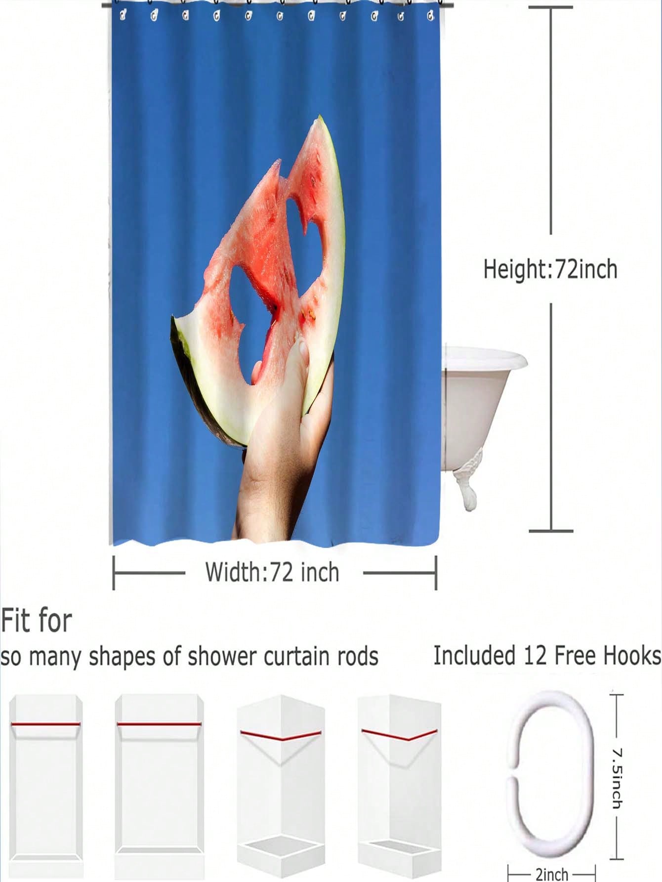 Juicy Watermelon Waterproof Bath Curtain with Hooks: Fun Bathroom Decor Accessory