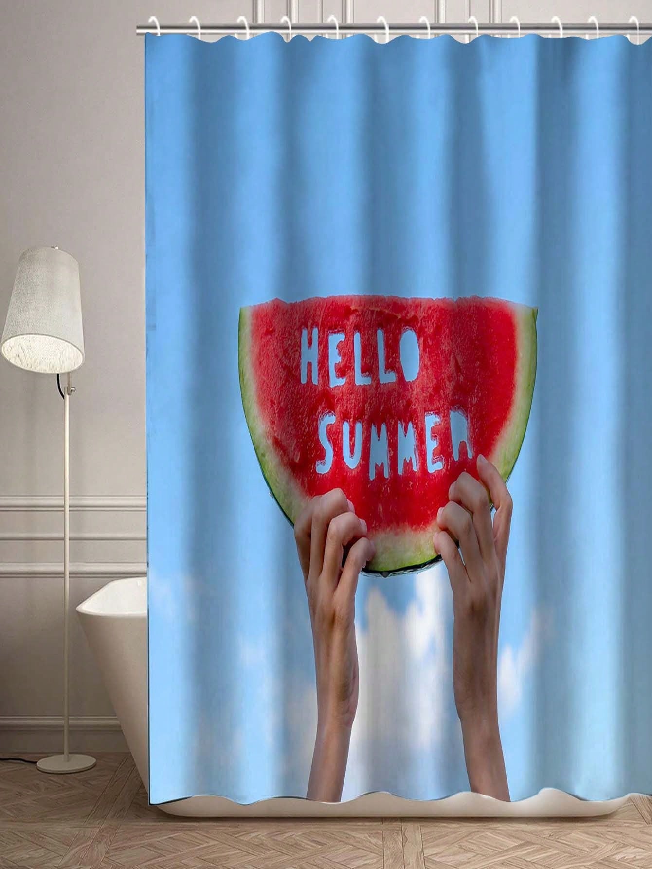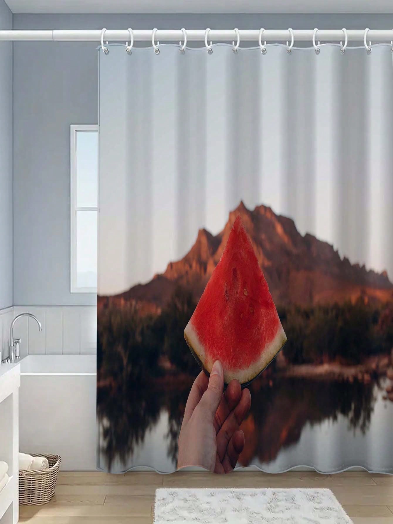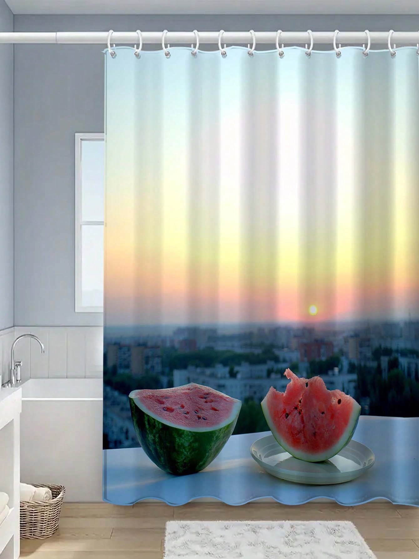 Juicy Watermelon Waterproof Bath Curtain with Hooks: Fun Bathroom Decor Accessory
