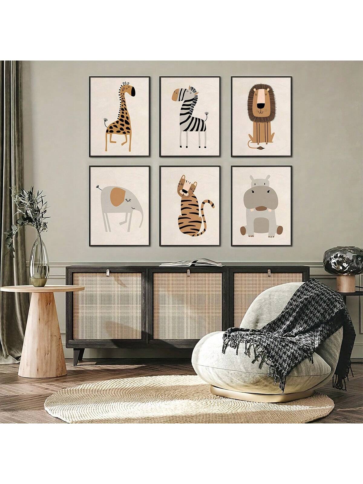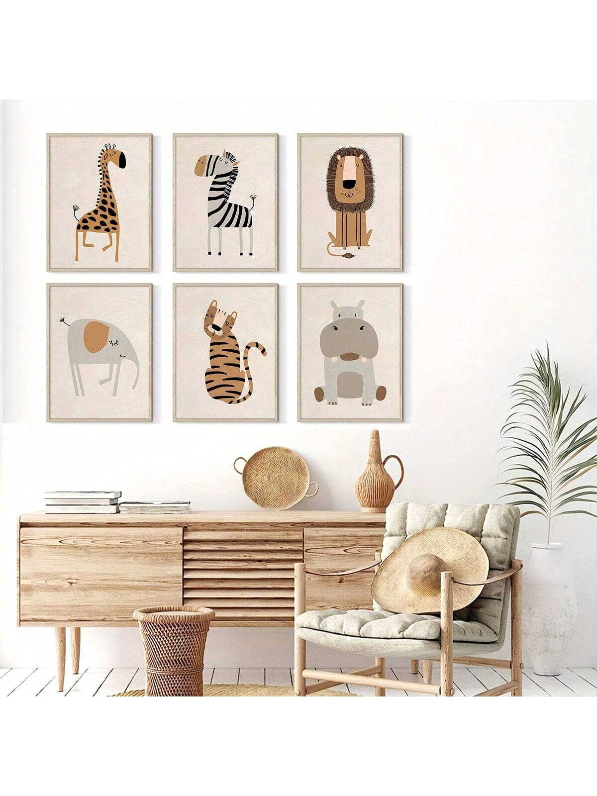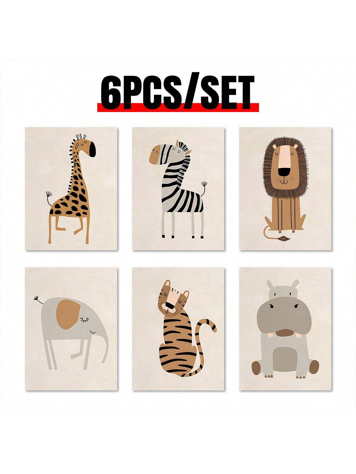 Jungle Lover's Art Set: 6-Piece Animal Oil Painting Collection for Baby Room Décor