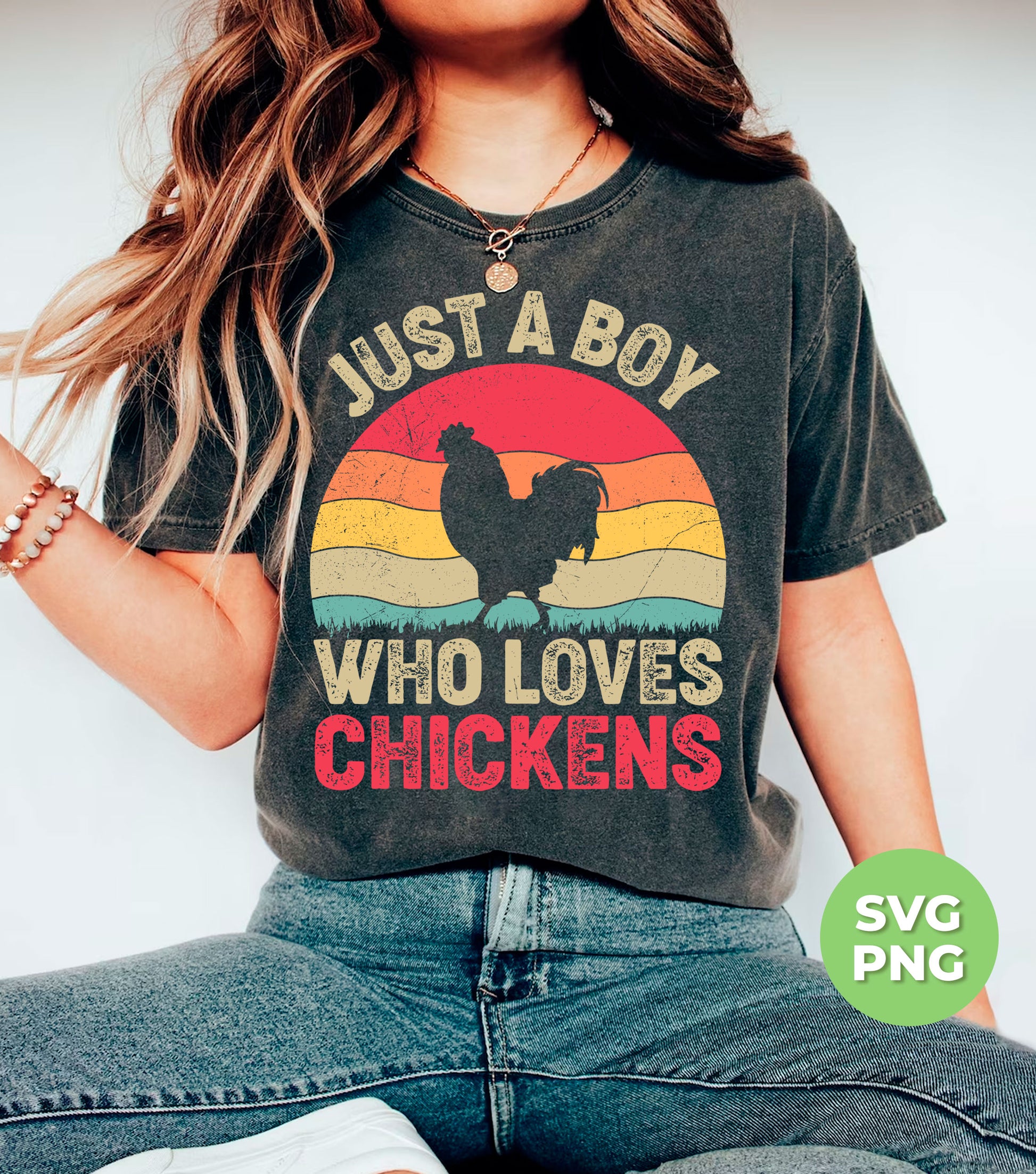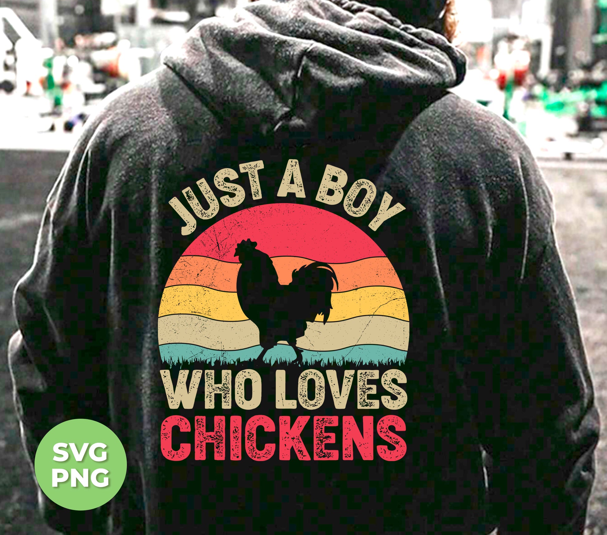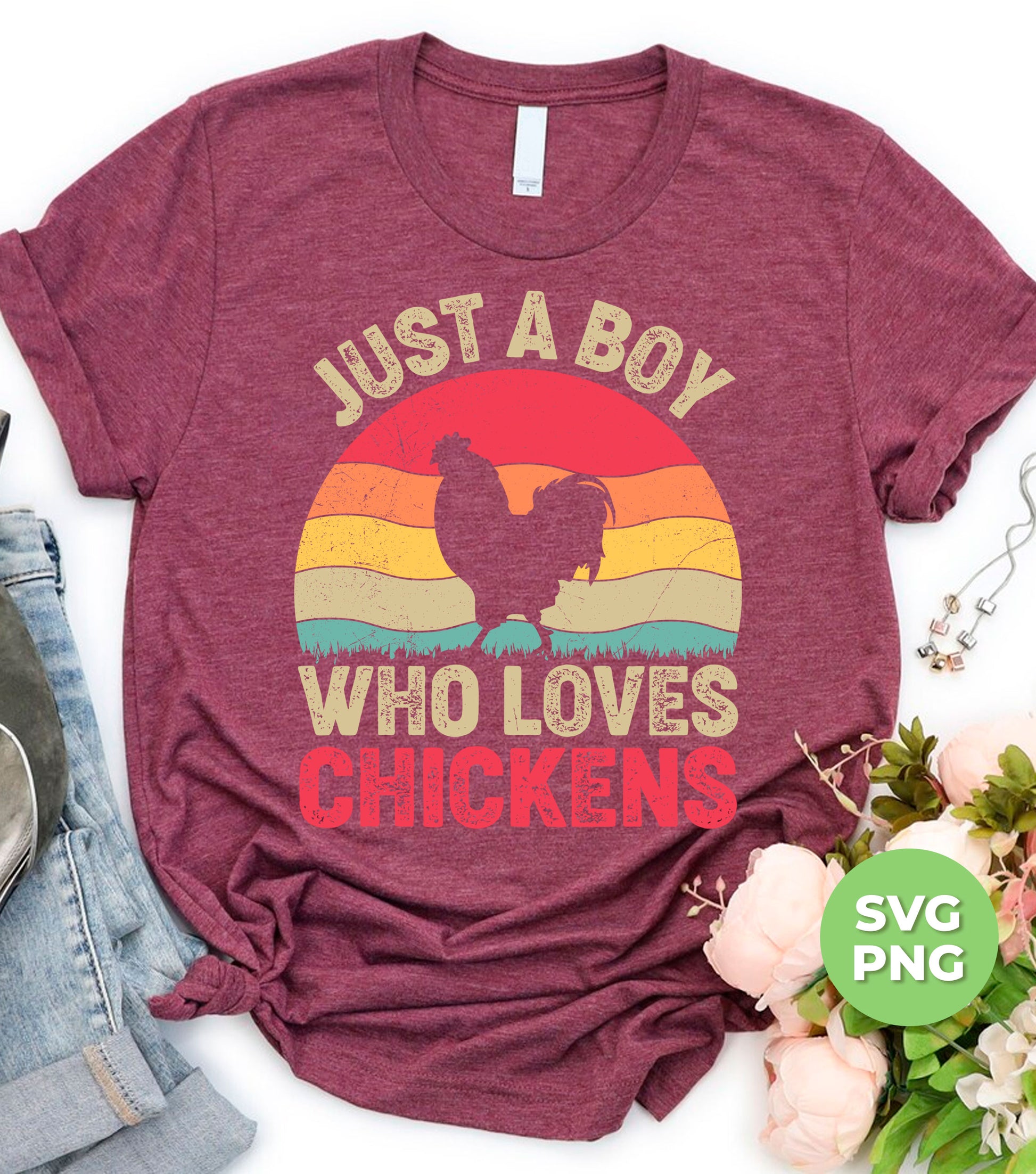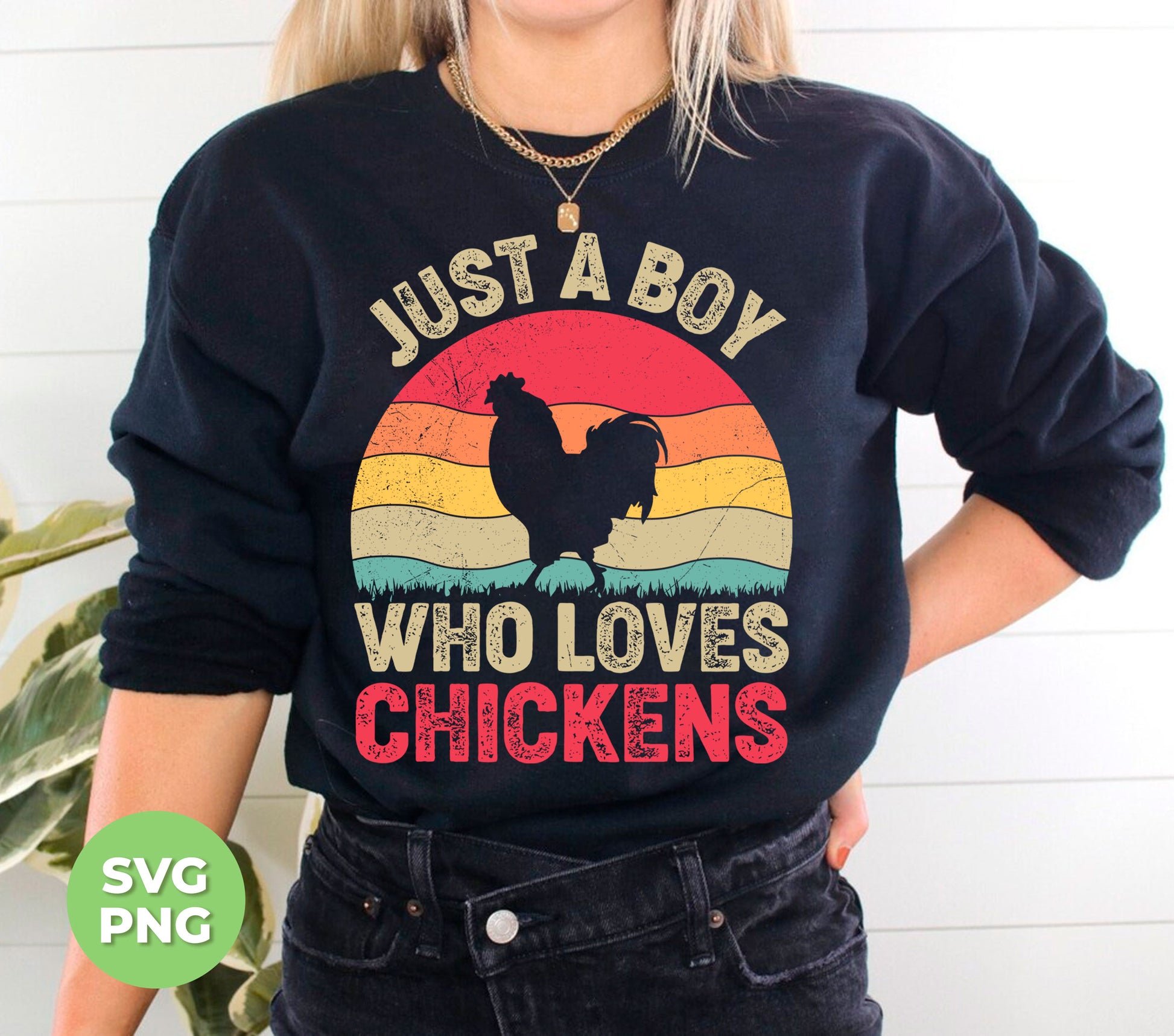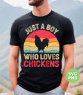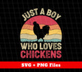 Just A Boy Who Loves Chickens, Retro Chicken Lover, Digital Files, Png Sublimation