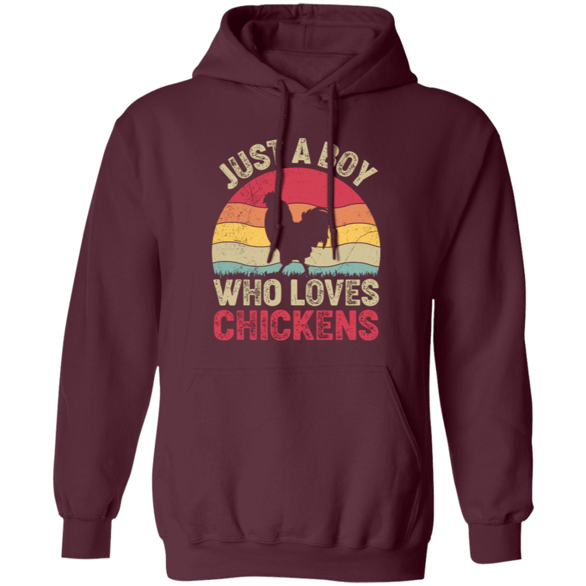 Just A Boy Who Loves Chickens, Retro Chicken Lover Pullover Hoodie