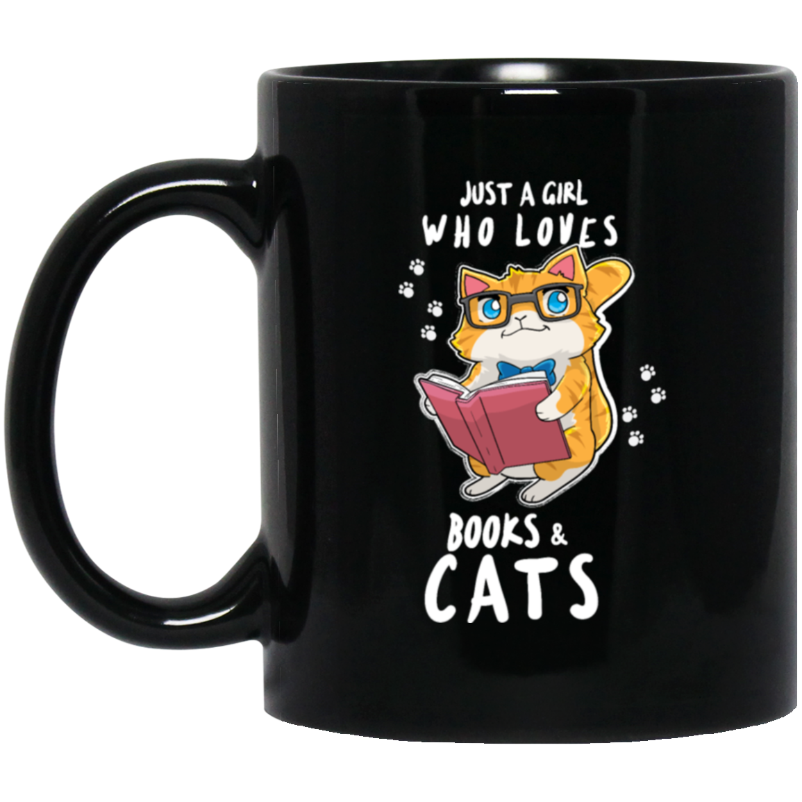 Just A Girl Who Loves Books And Cats, Love Books And Cats, Bookworm Gift Black Mug