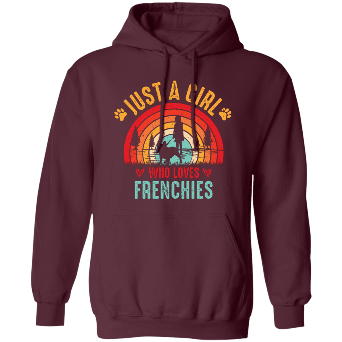Just A Girl Who Loves Frenchies, Retro French Bulldog Pullover Hoodie