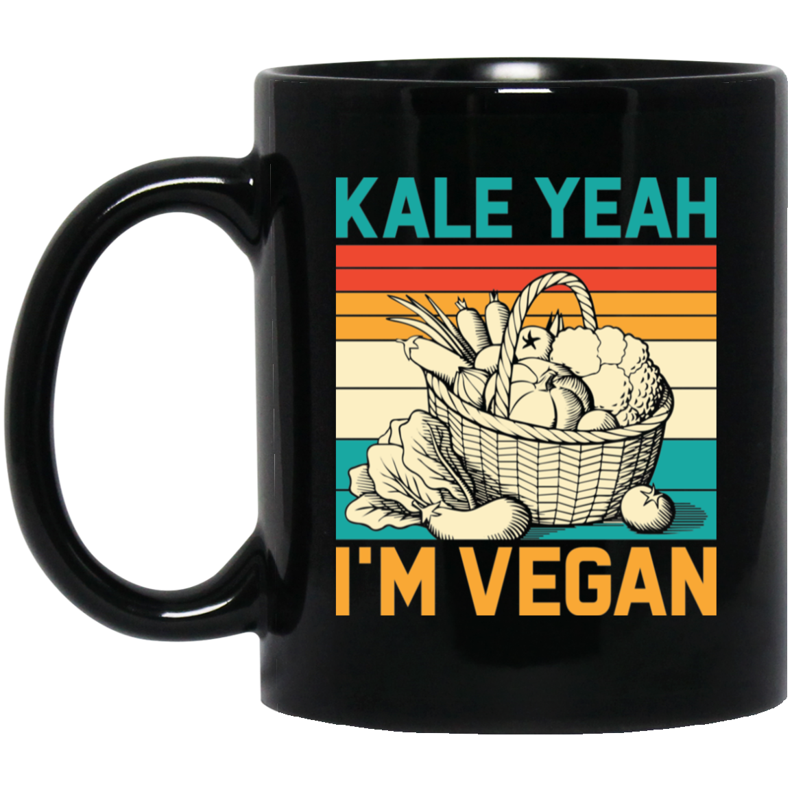 Kale Yeah, I'm Vegan, Retro Kale Yeah, Vegan Vintage Black Mug