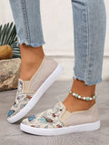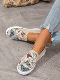 Khaki Butterfly Embroidery Plus Size Sport Shoes: Stylish & Comfortable Athletic Sneakers