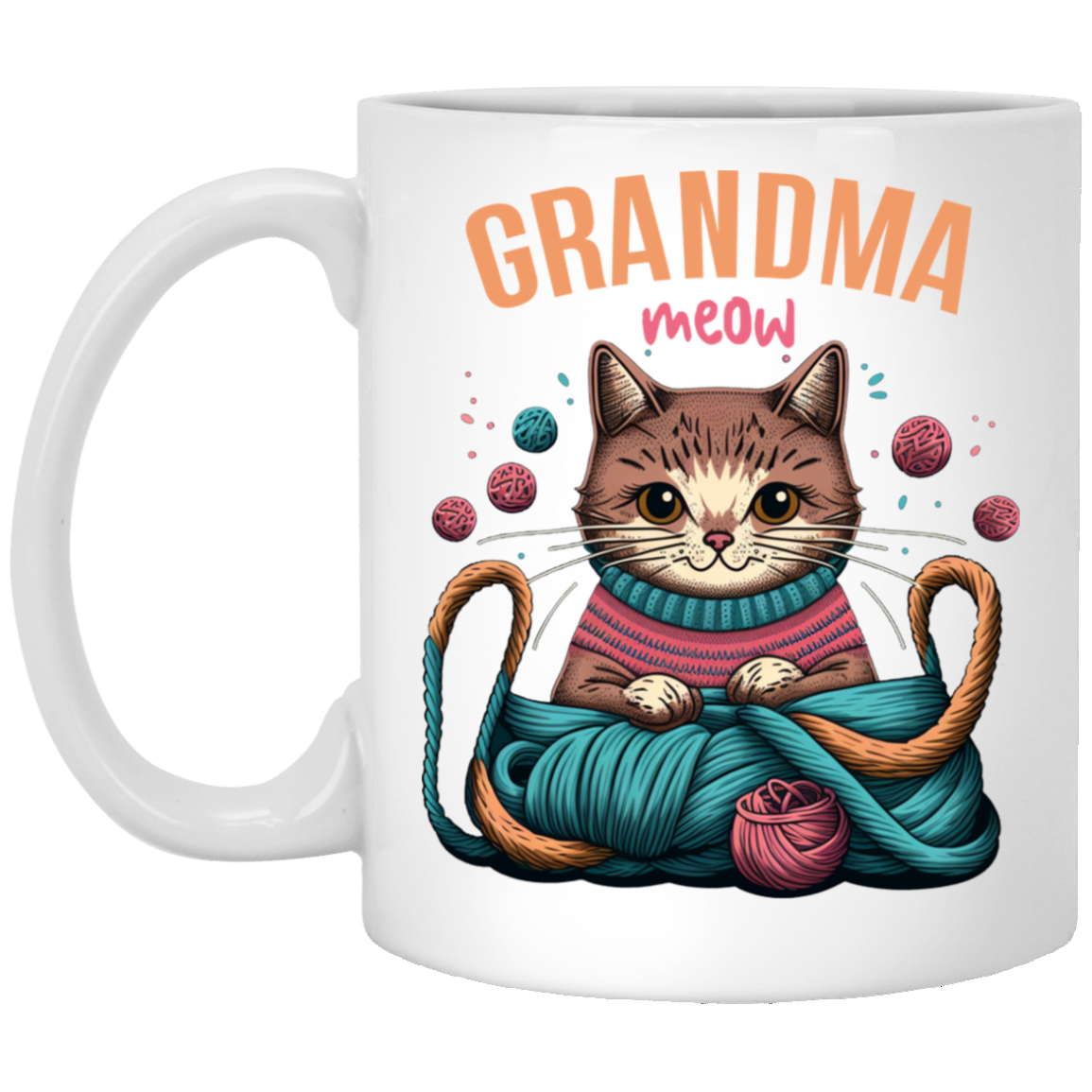 Knitting Grandma, Grandmeow, Love Cat, Love Knit, Gift For Grandma White Mug