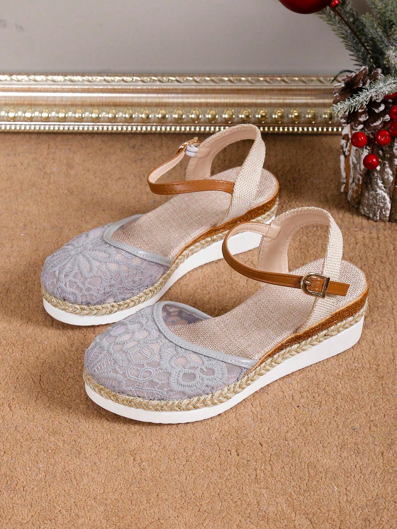 Lace Mesh Bohemian Fairy Espadrille Sandals: Summer's Waterproof Wedge Exclusive