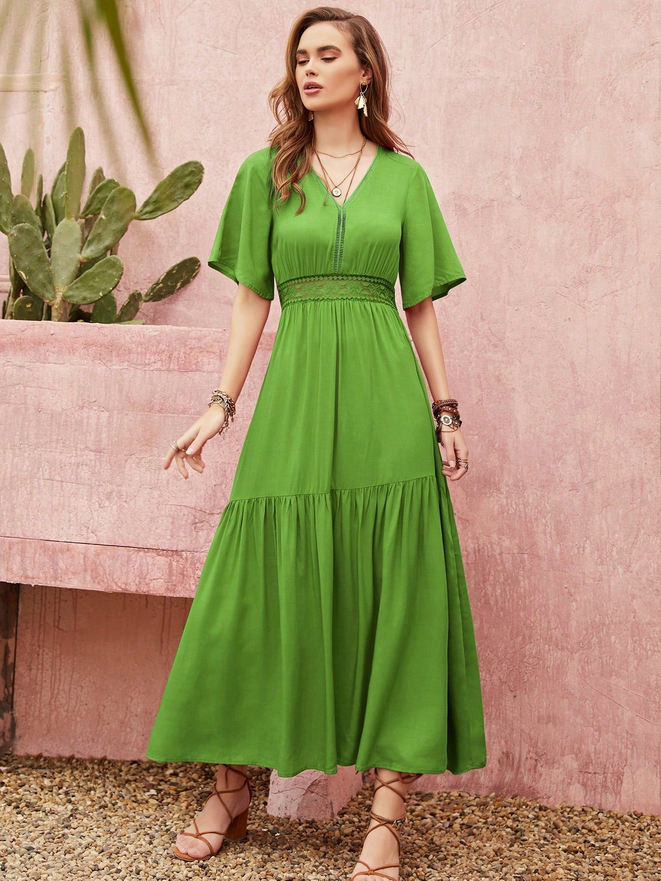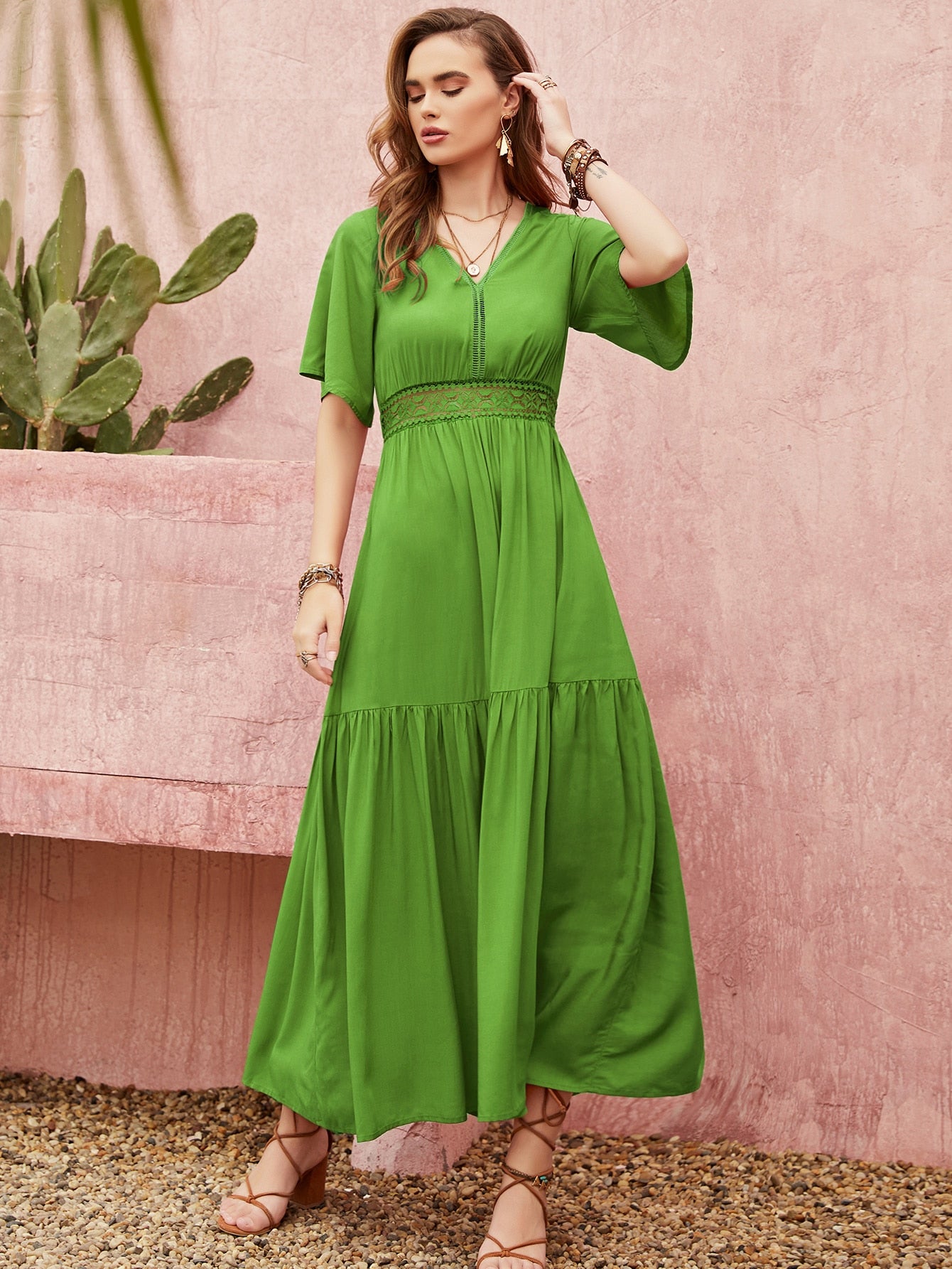 Lace Ruffle A-Line Dress: A Solid Contrast for Your Wardrobe
