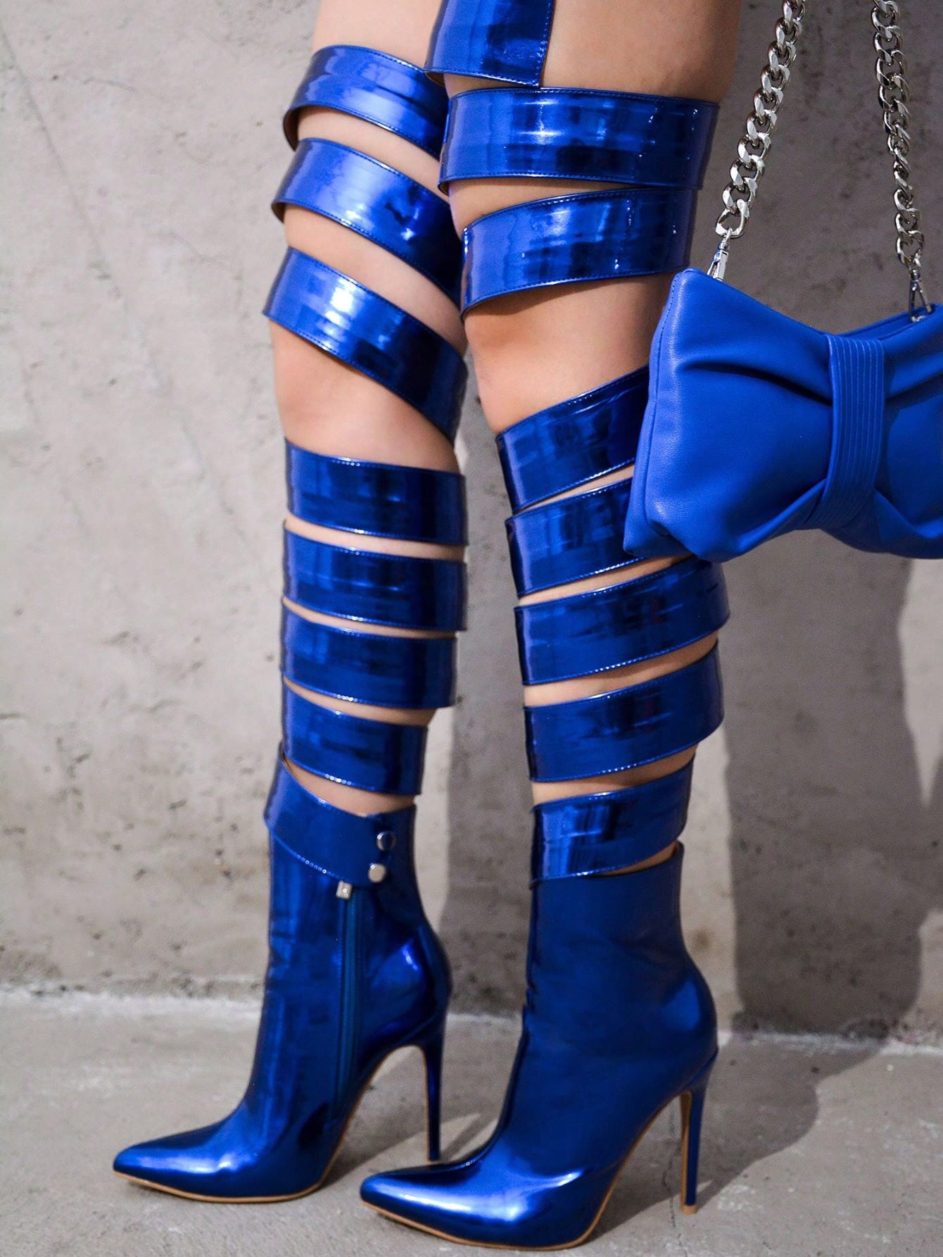 Lapel Thigh-High Wrap-Around Stiletto Heels