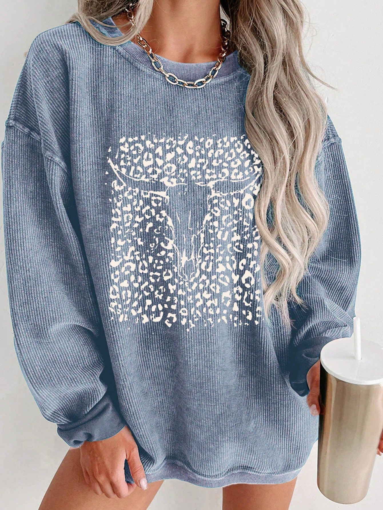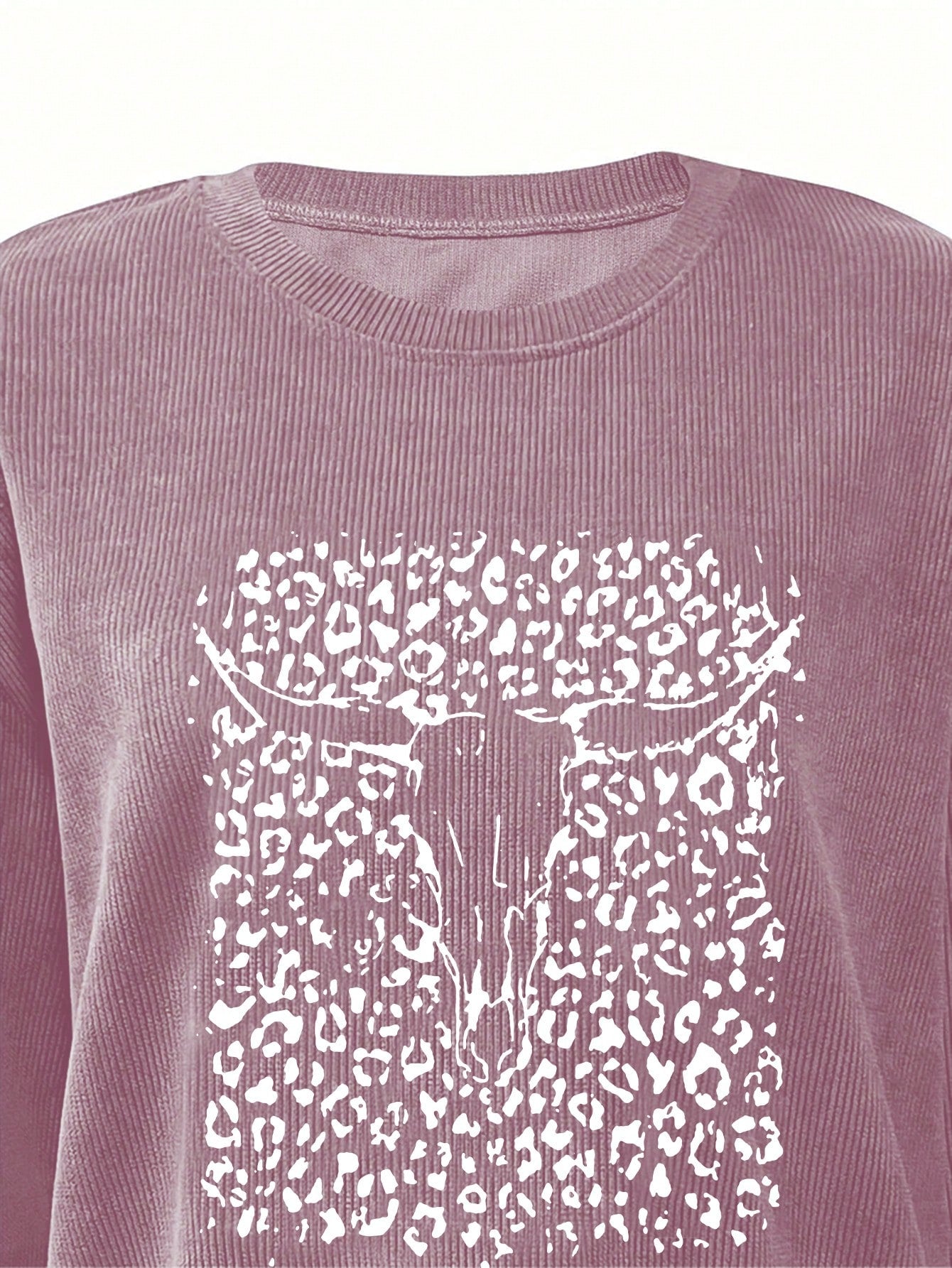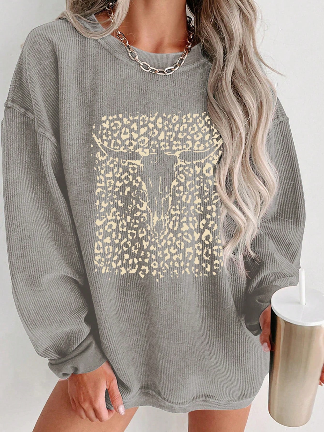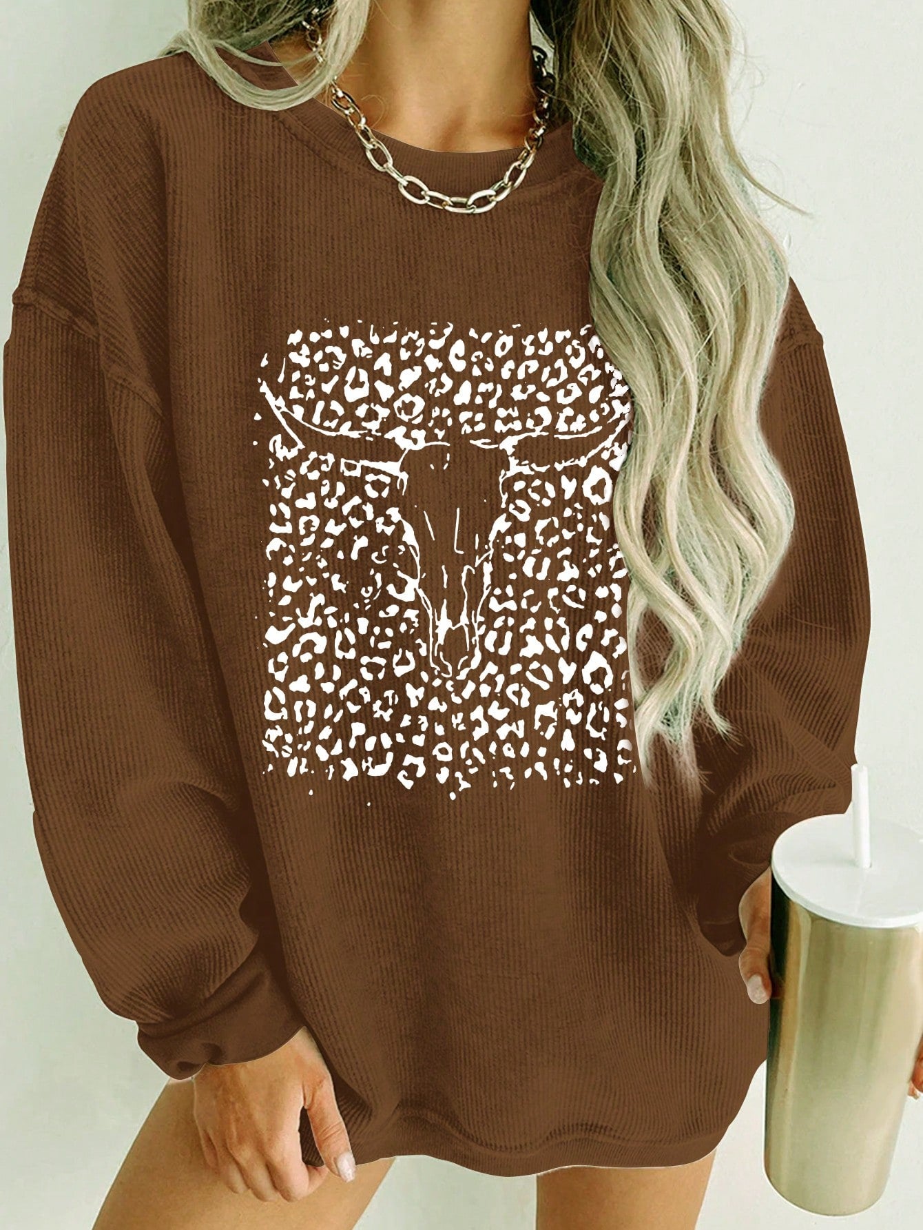 Leopard & Bull Head Print Sweatshirt: Cozy and Stylish!