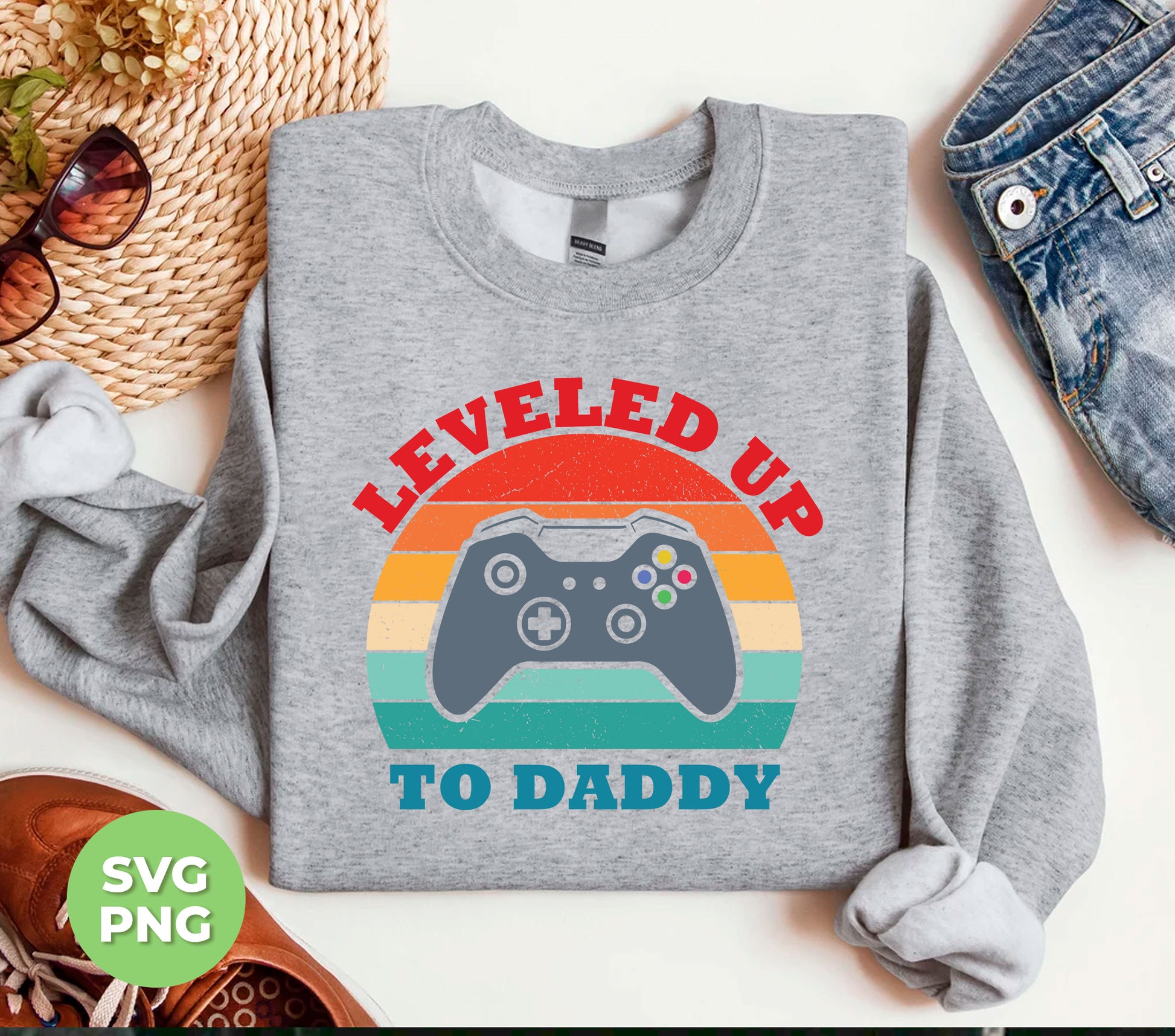 Leveled Up To Daddy, Retro Gamer Gift, Father's Day Gift, Digital Files, Png Sublimation