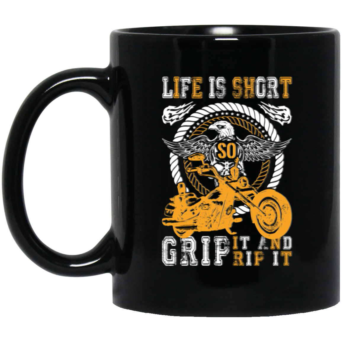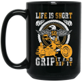 Life Is Short, So Grip It And Rip It, Retro Eagle, Motorbike Black Mug