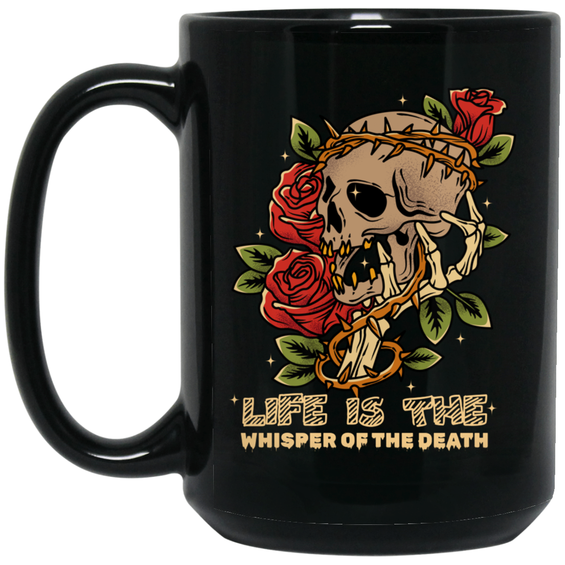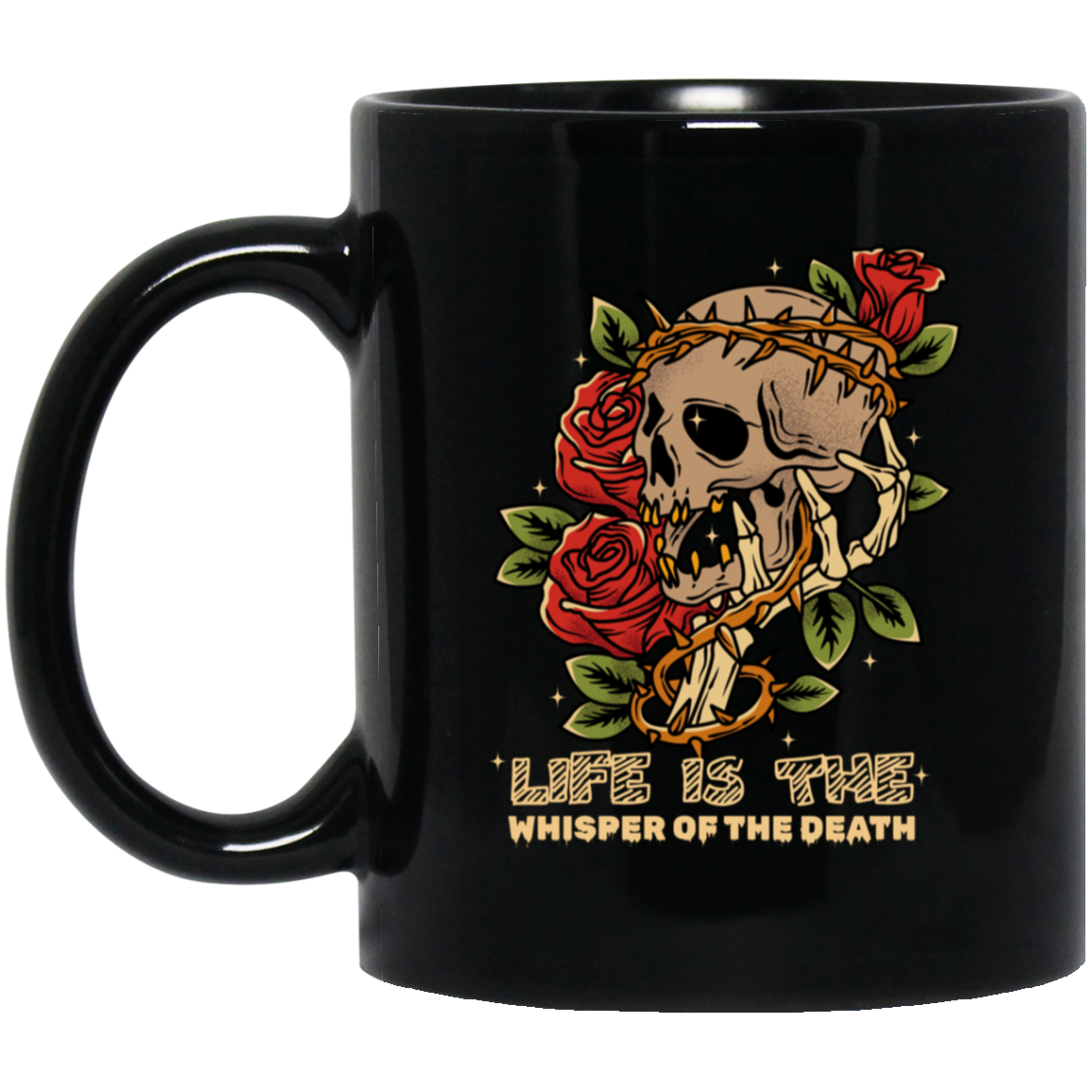 Life Is The Whisper Of The Death, Skull With Roses Black Mug