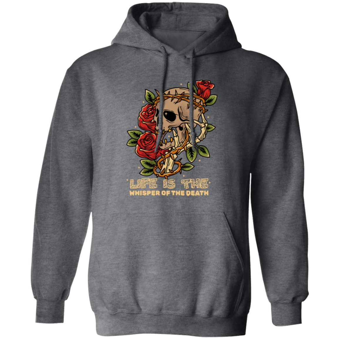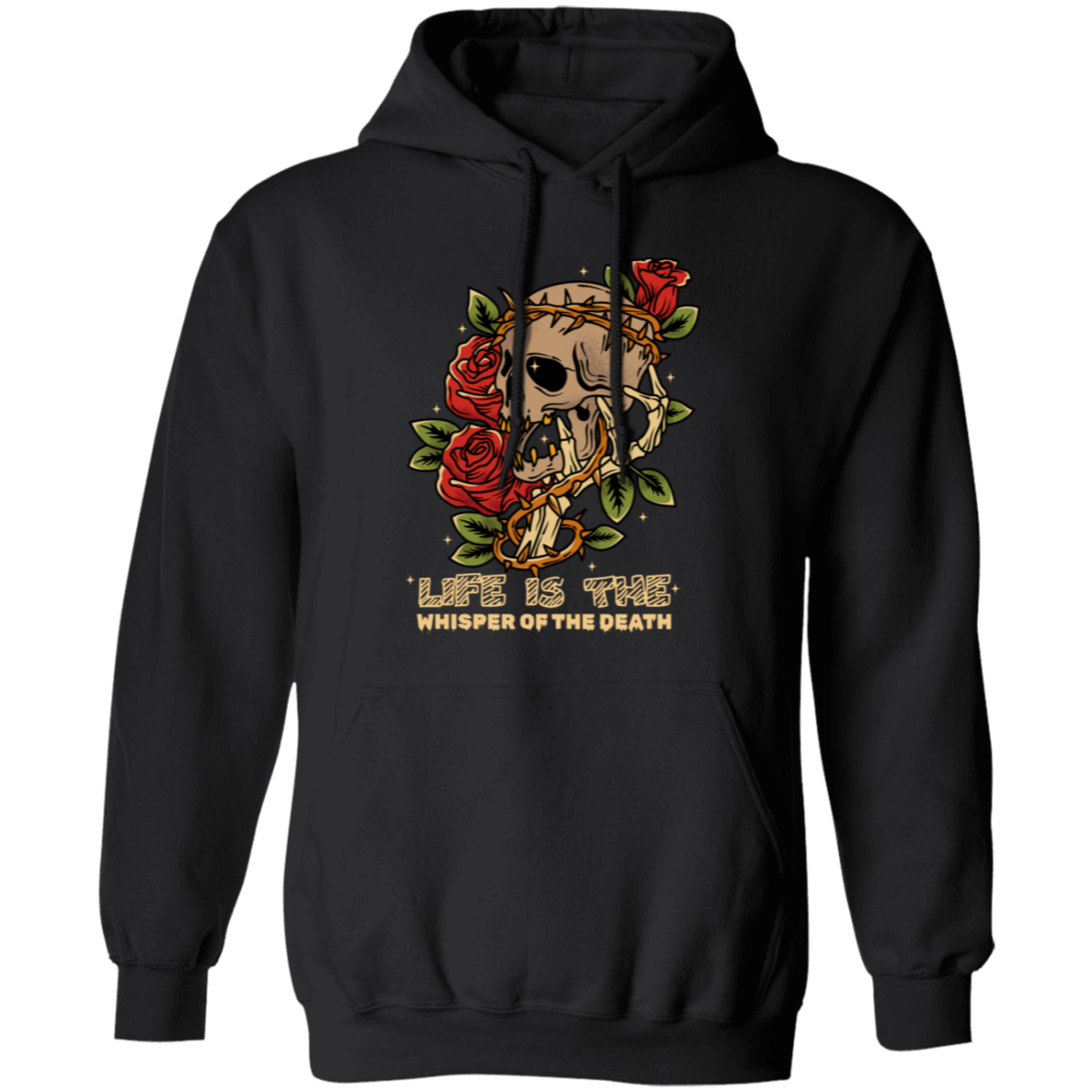 Life Is The Whisper Of The Death, Skull With Roses Pullover Hoodie