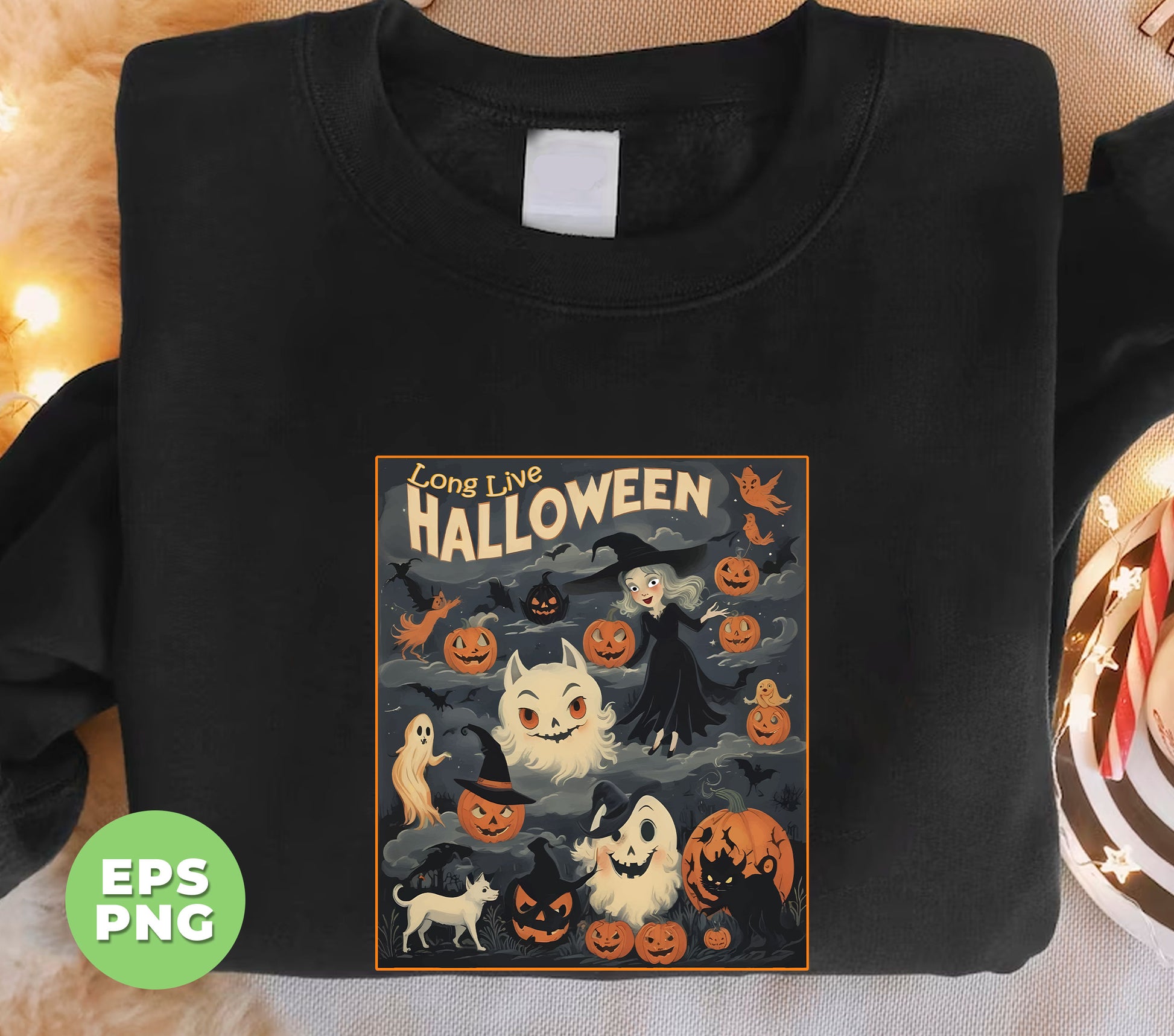 Long Live Halloween, Retro Halloween, Vintage Halloween, Spooky Season, Black Cat, Digital Files, Png Sublimation