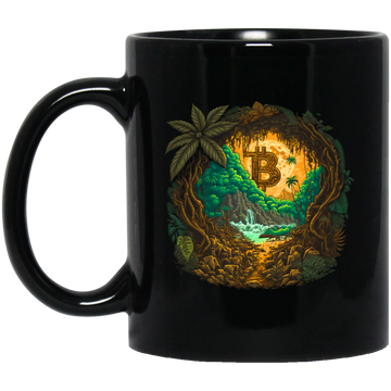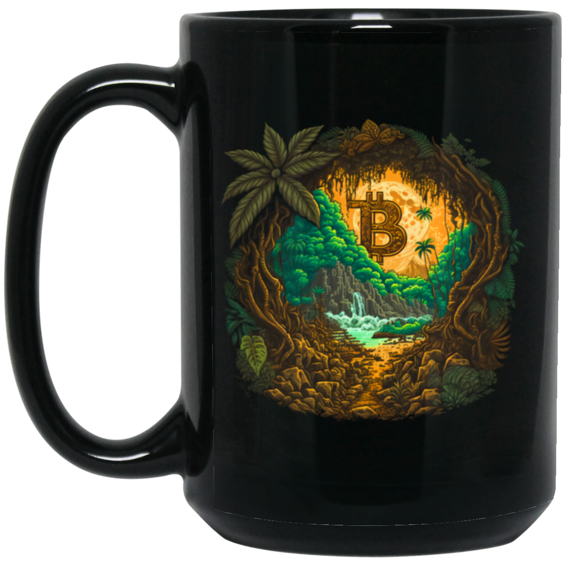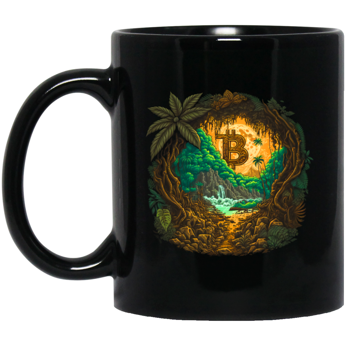 Love Bitcoin Gift, Bitcoin In The Jungle, Secret Forest, Mystery Jungle Black Mug