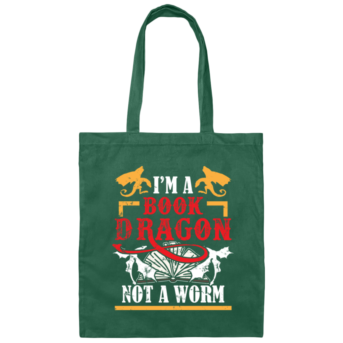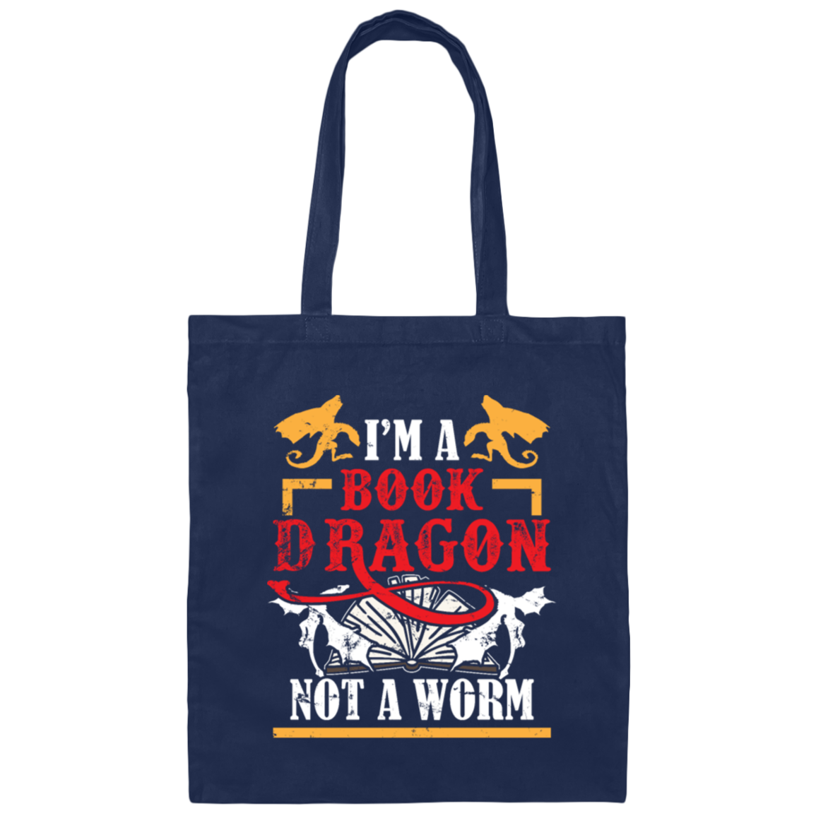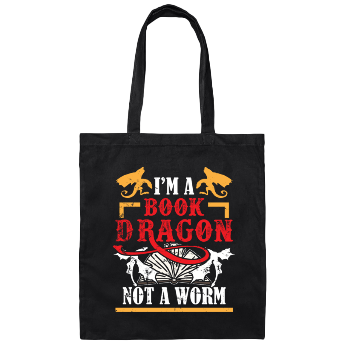 Love Book, I Am A Book-dragon, Not A Bookworm, Retro Book Gift Canvas Tote Bag
