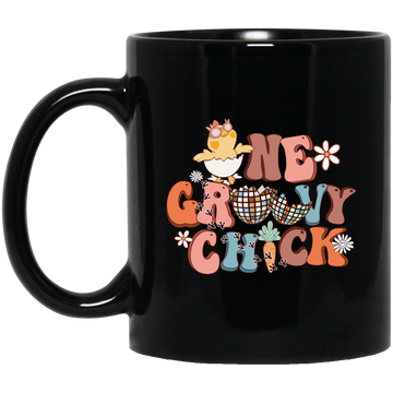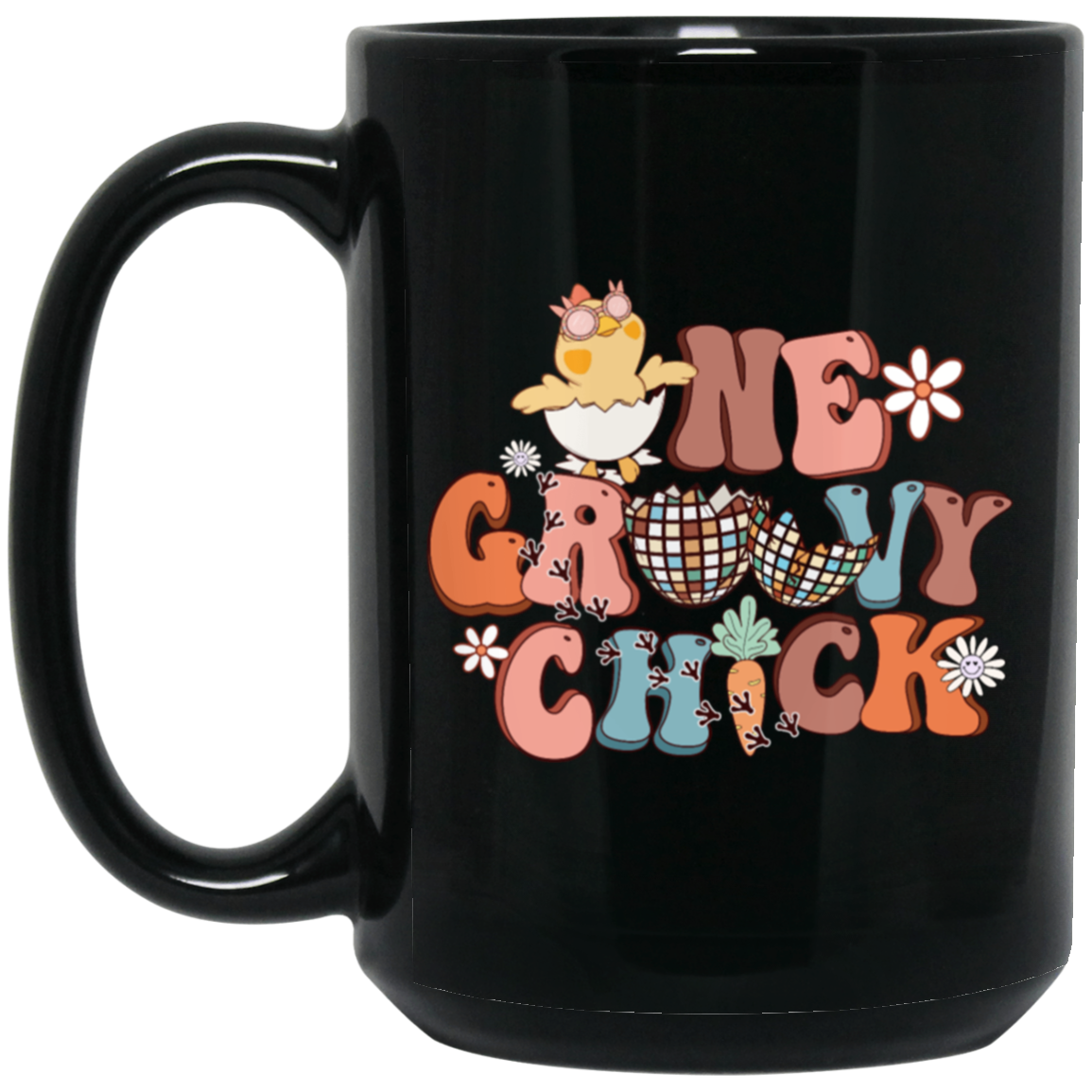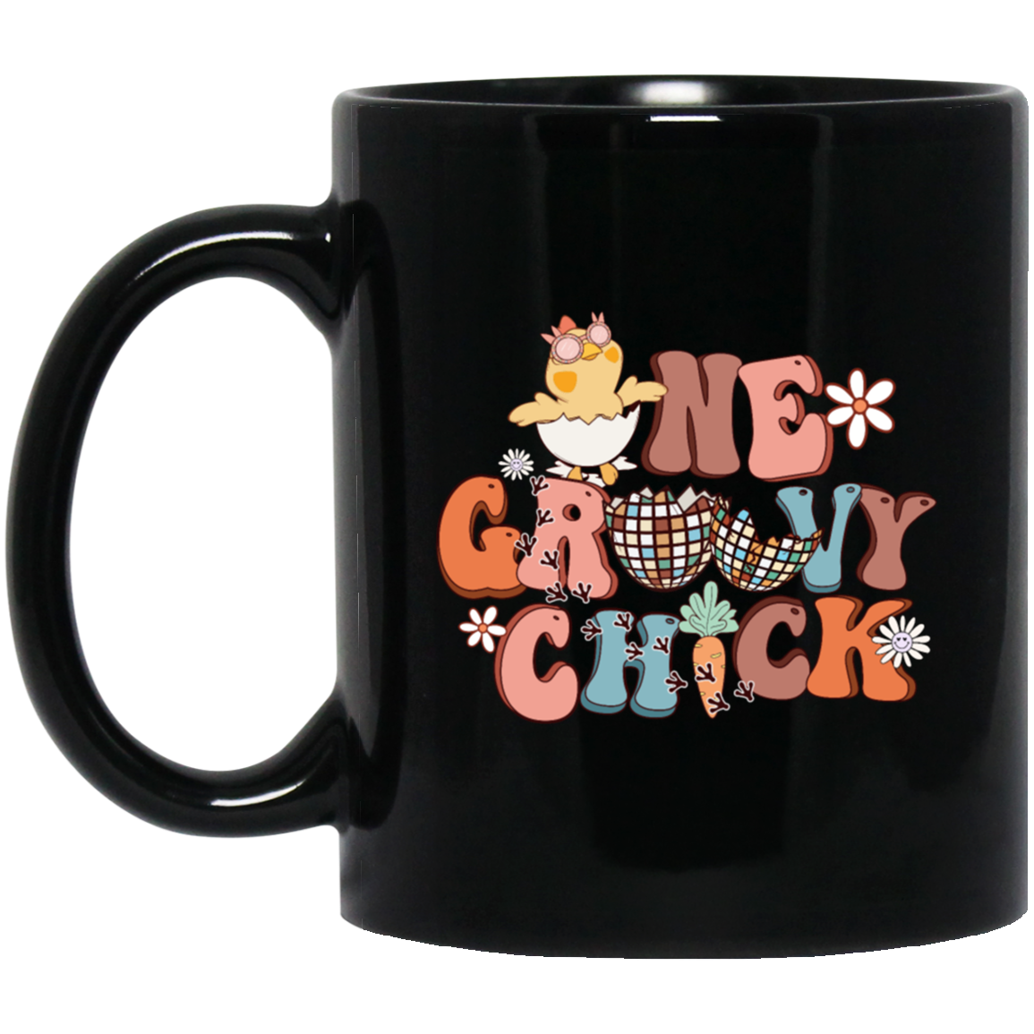 Love Chicken Gift, One Groovy Chick, Retro Chicken, Easter Gift Love Black Mug