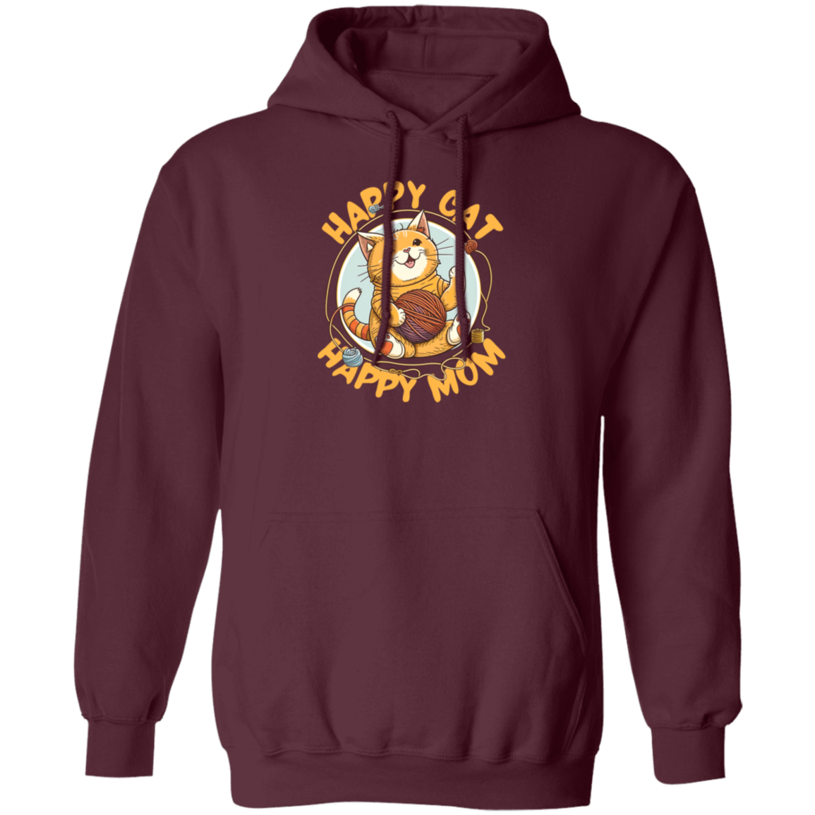 Love Cute Cat, Happy Cat, Happy Mommy, Best Cat Ever, Cat With Ball Of Knitting Wood Pullover Hoodie