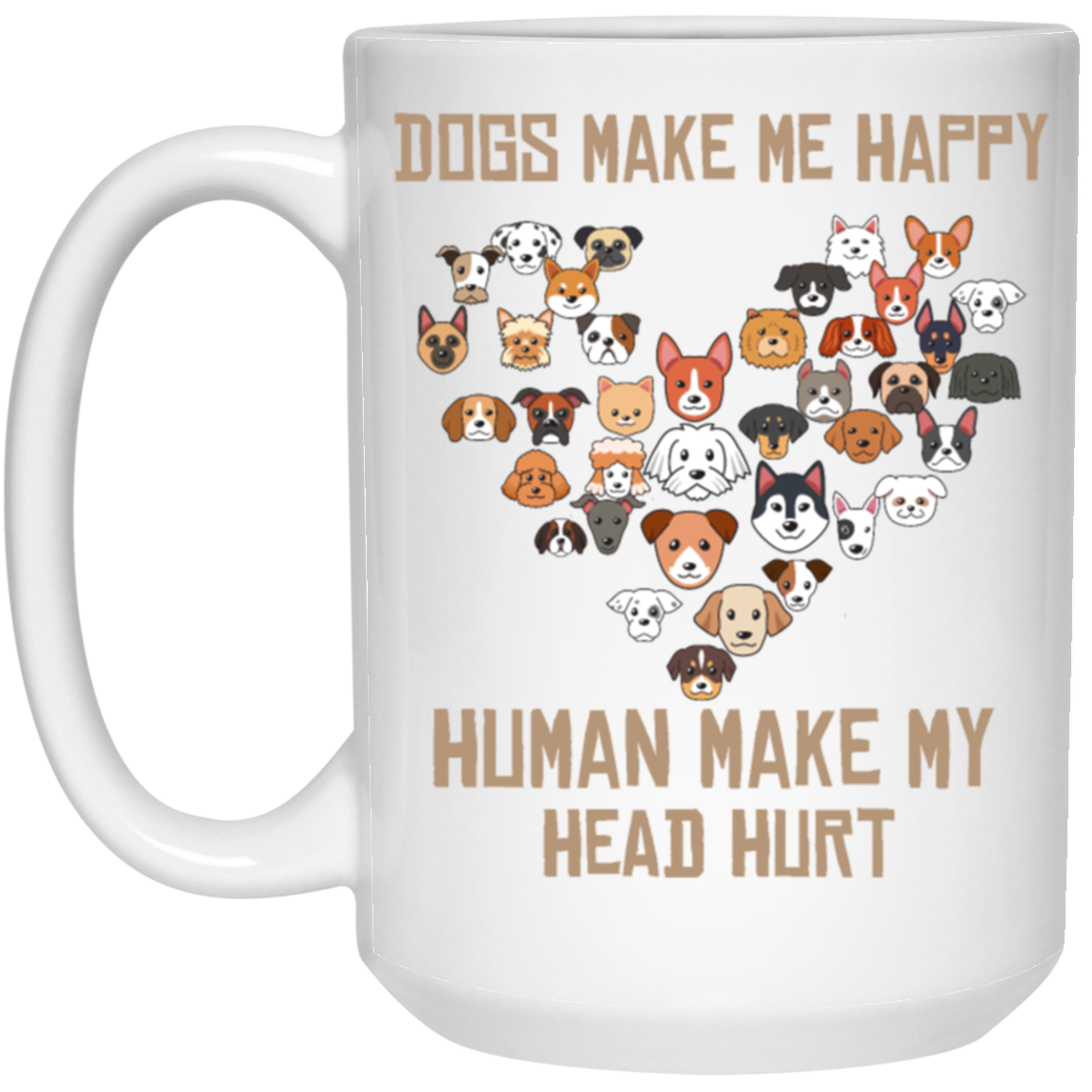 Love Dogs Gift, Dog Make Me Happy, Human Make My Head Hurt White Mug