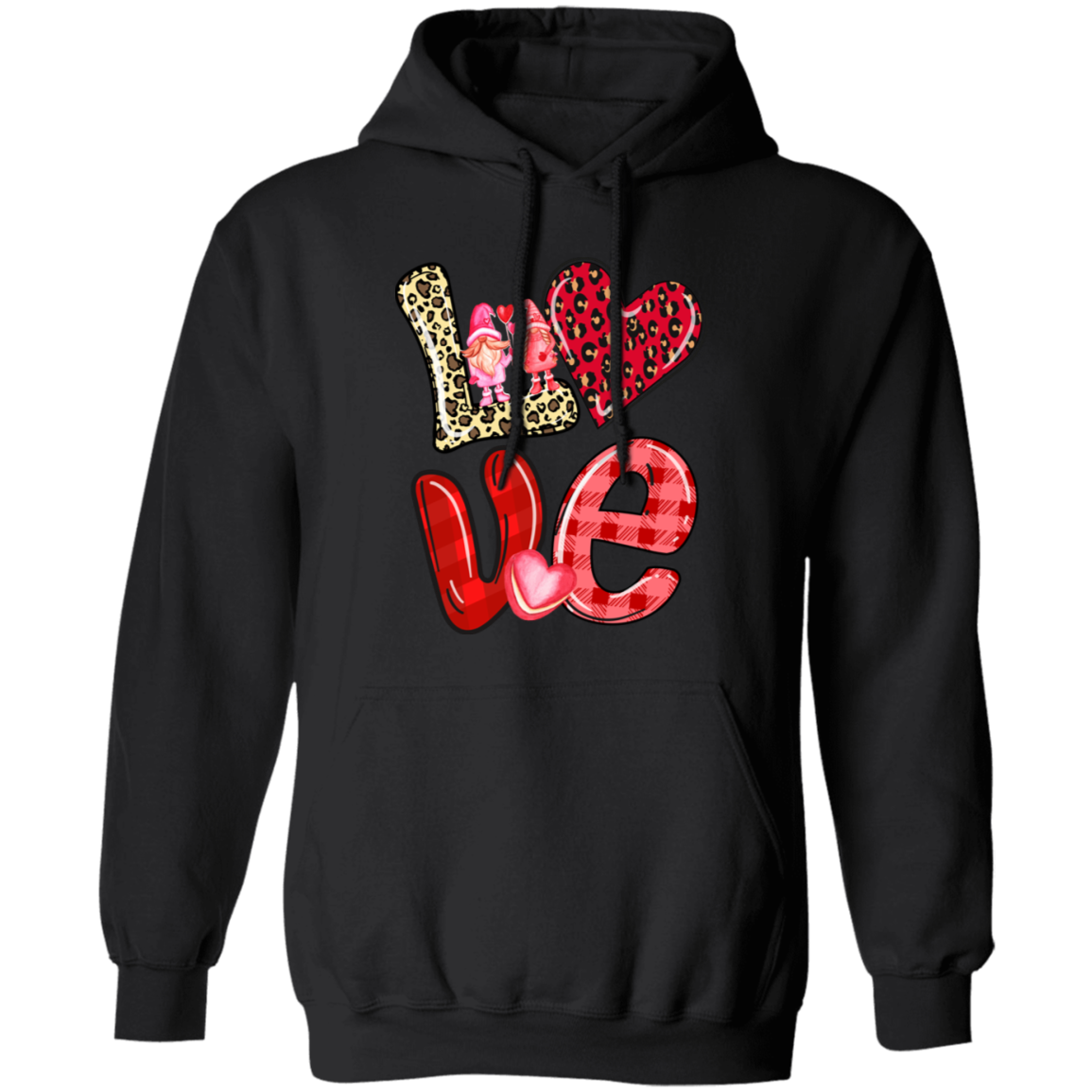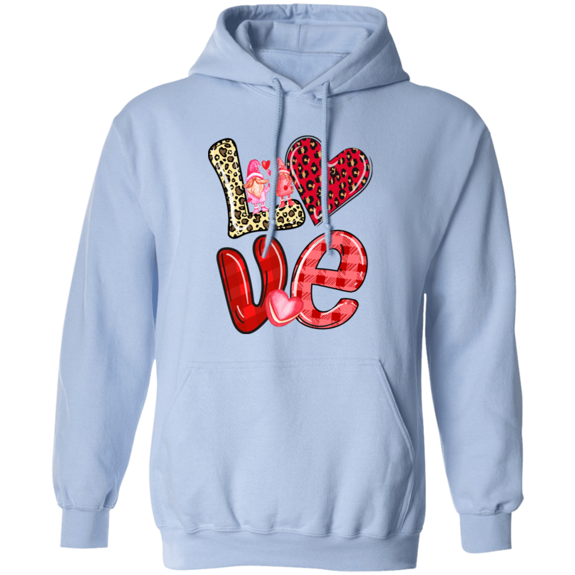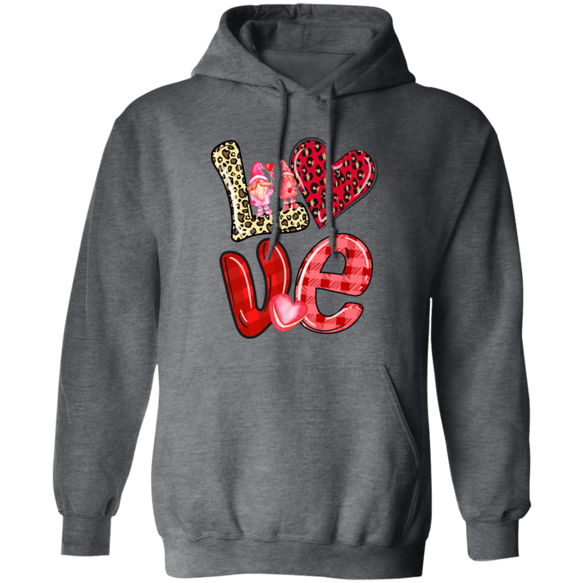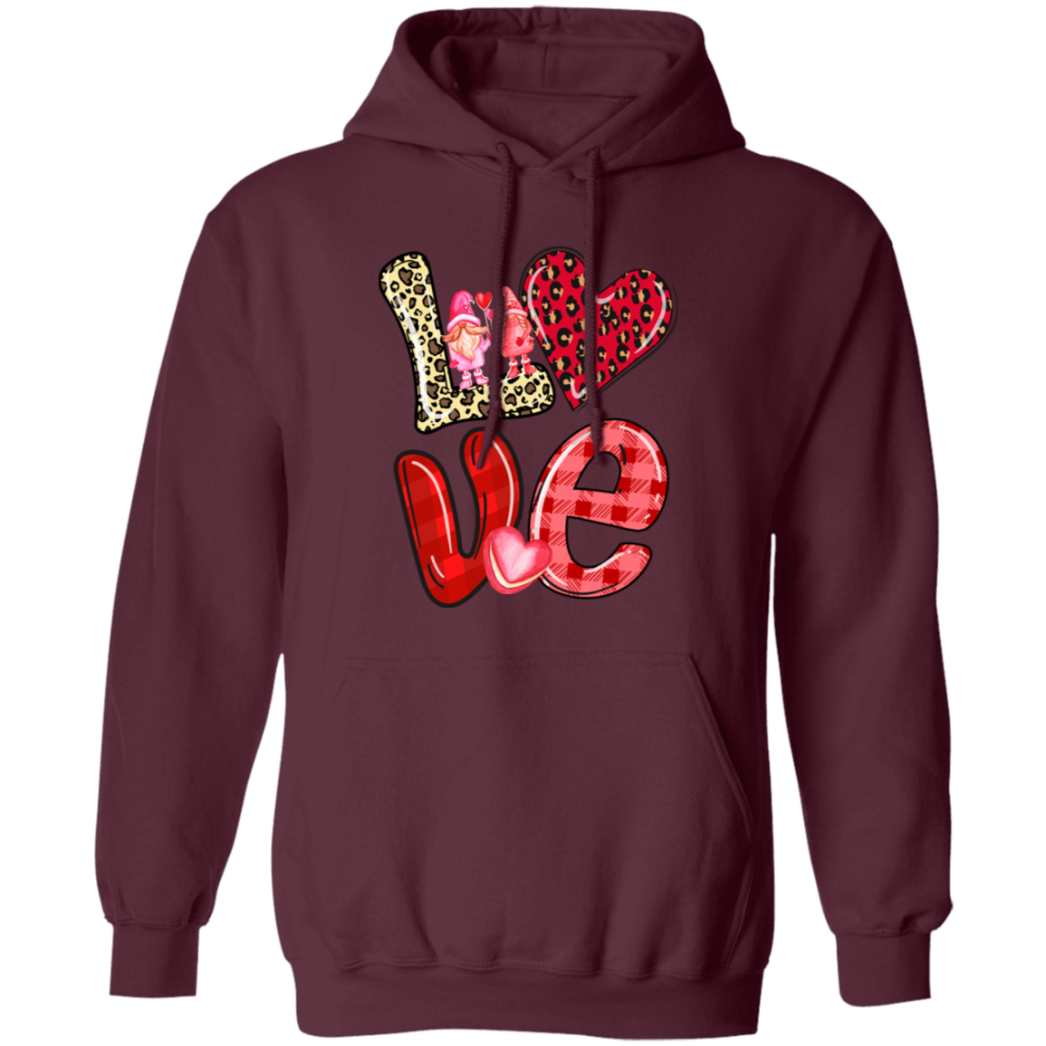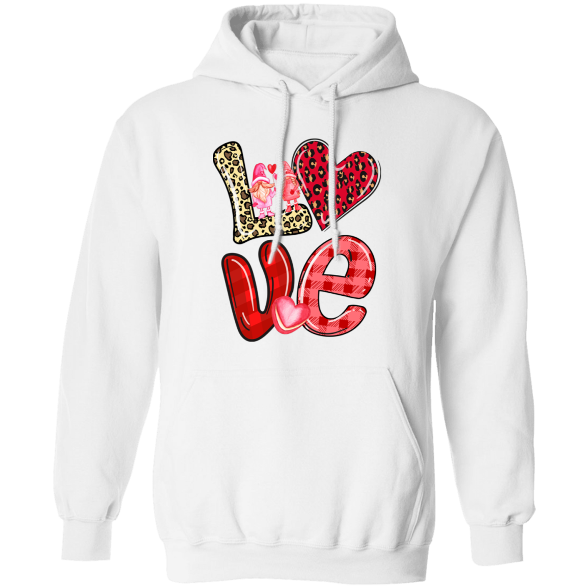 Love Gnome, My Love, Valentine Pattern, Leopard Love, Valentine's Day, Trendy Valentine Pullover Hoodie