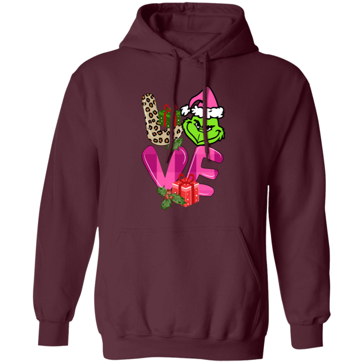 Love Grinch, Pink Grinch, Funny Love Grinch, Trendy Grinch, Merry Christmas, Trendy Christmas Pullover Hoodie