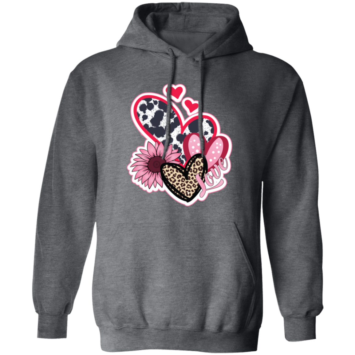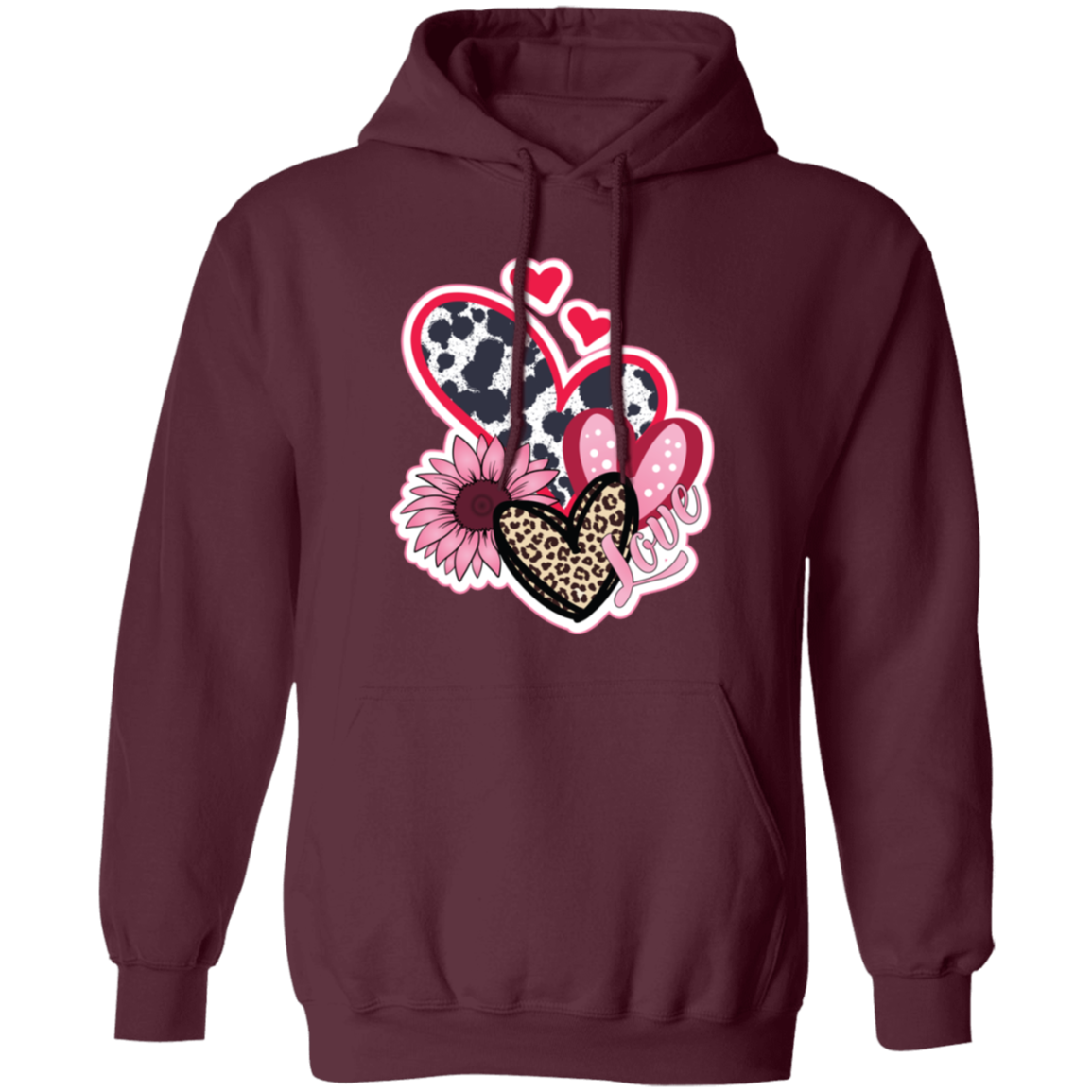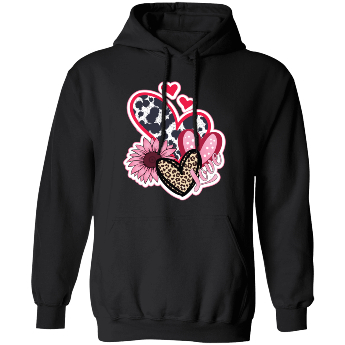 Love Heart, Valentine Heart, Pink Heart, Pink Sunflower, Leopard Heart Pullover Hoodie
