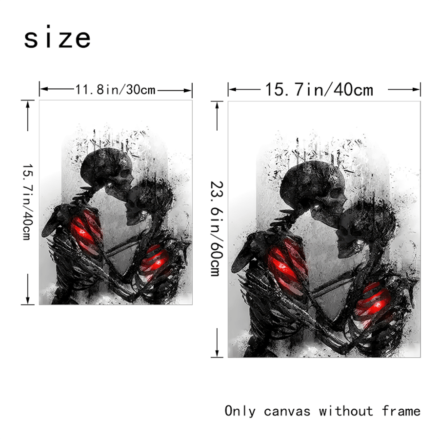 Enhance the modern décor of your home with our Love in Death: Hug Skeleton Wall Art. Crafted with attention to detail, this piece adds a unique touch to any room. The skeleton's embrace signifies eternal love and will infuse your space with a sense of romance and mystery.