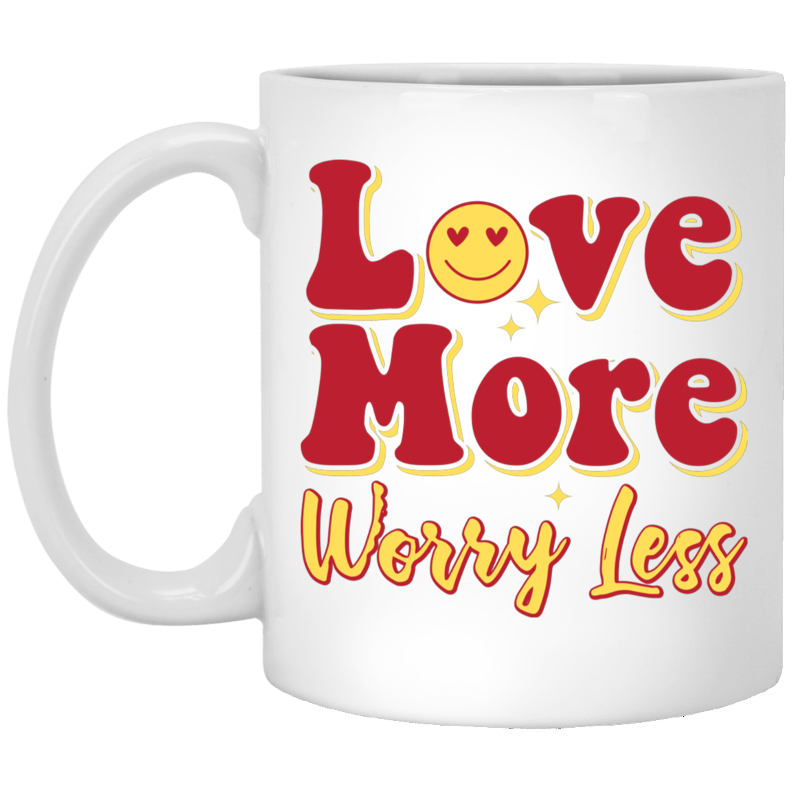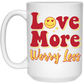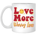 Love More, Worry Less, Smile Face, Bling Love White Mug