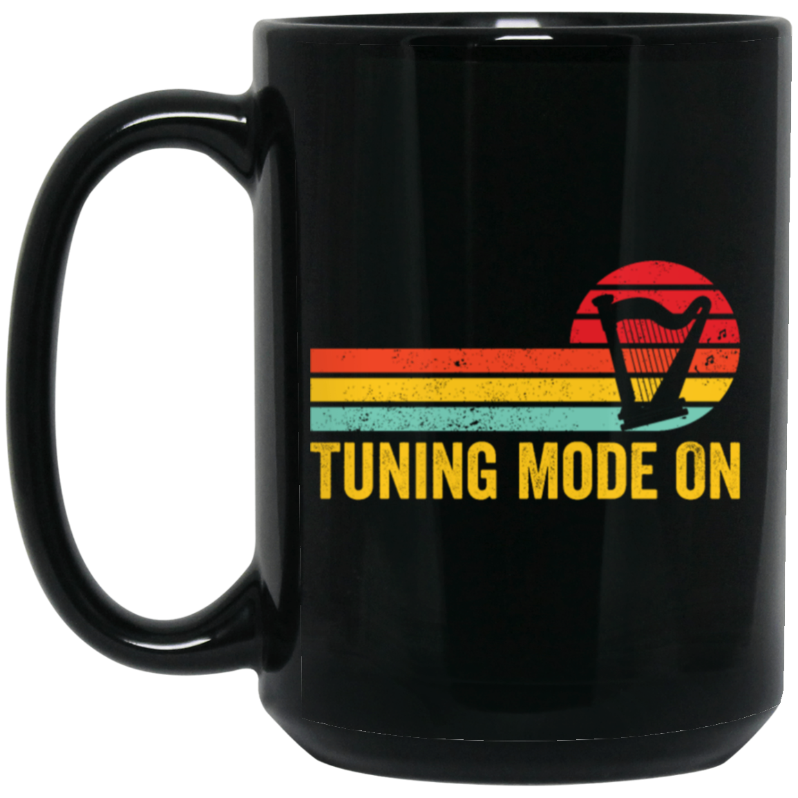 Love Music, Harp Player Gift, Harpist Retro, Tuning Mode On, Love Harp Vintage Black Mug