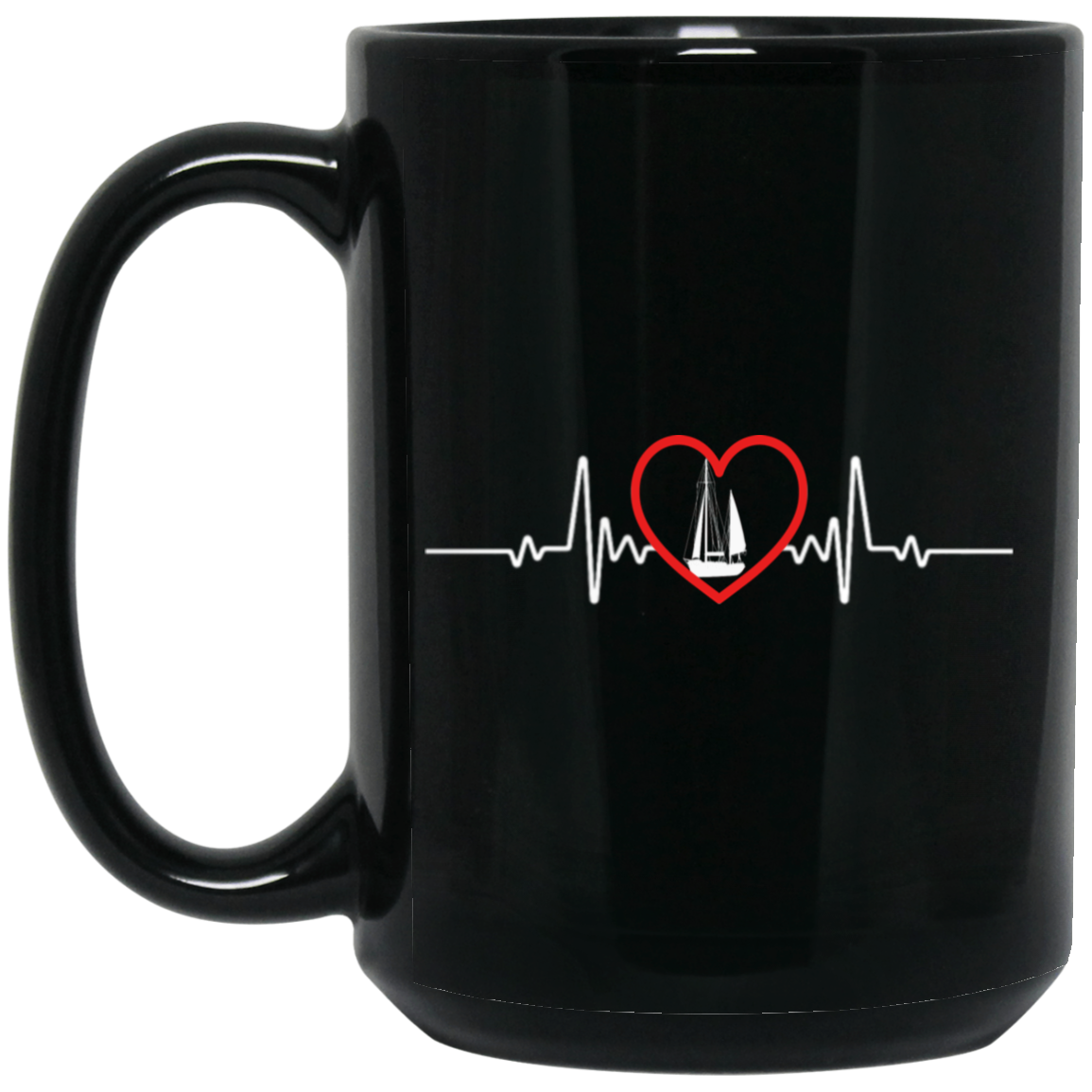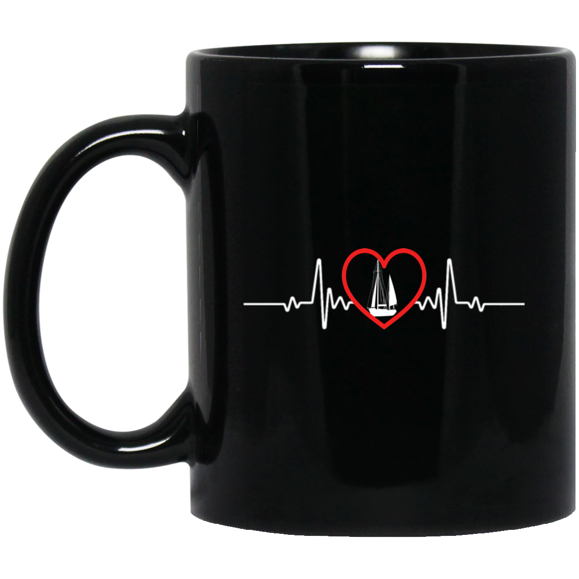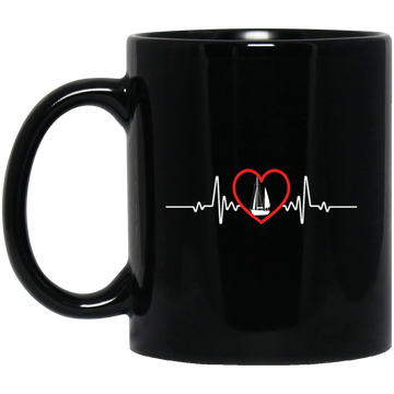 Love Sailing Boat Heartbeat, Sailing Boat And Heart, Love Sailing, Heartbeat Boat Black Mug