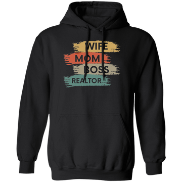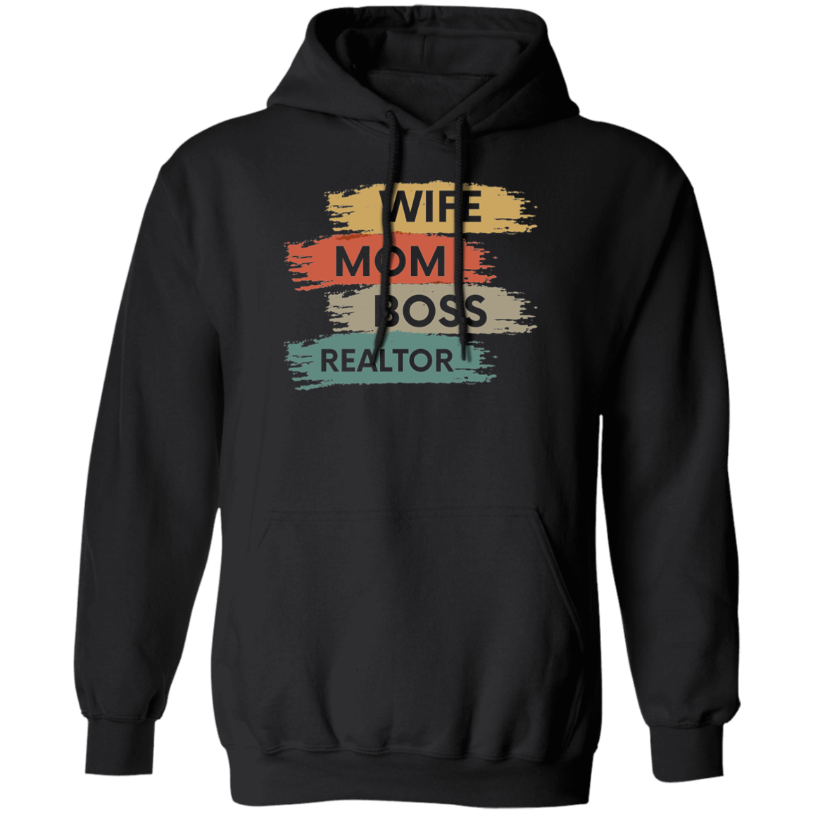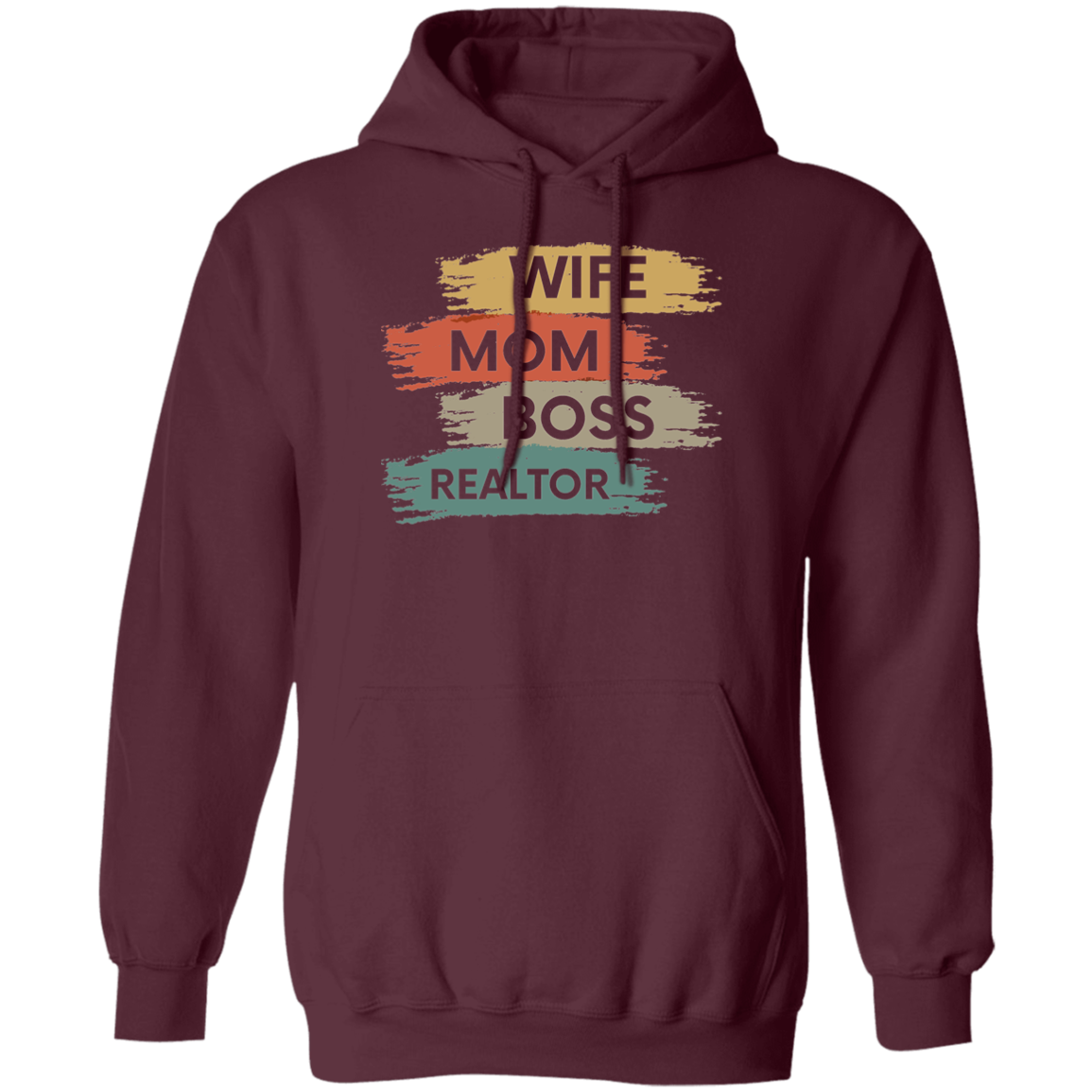 Love Wife Love Mom, Mom As Wife As Boss, Realtor Mom, Retro Mother Gift Pullover Hoodie