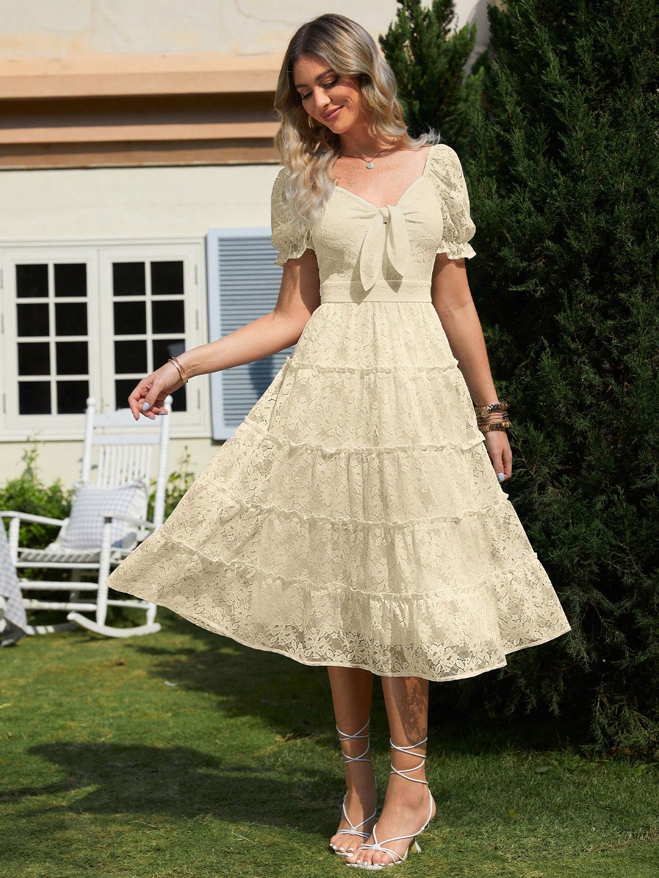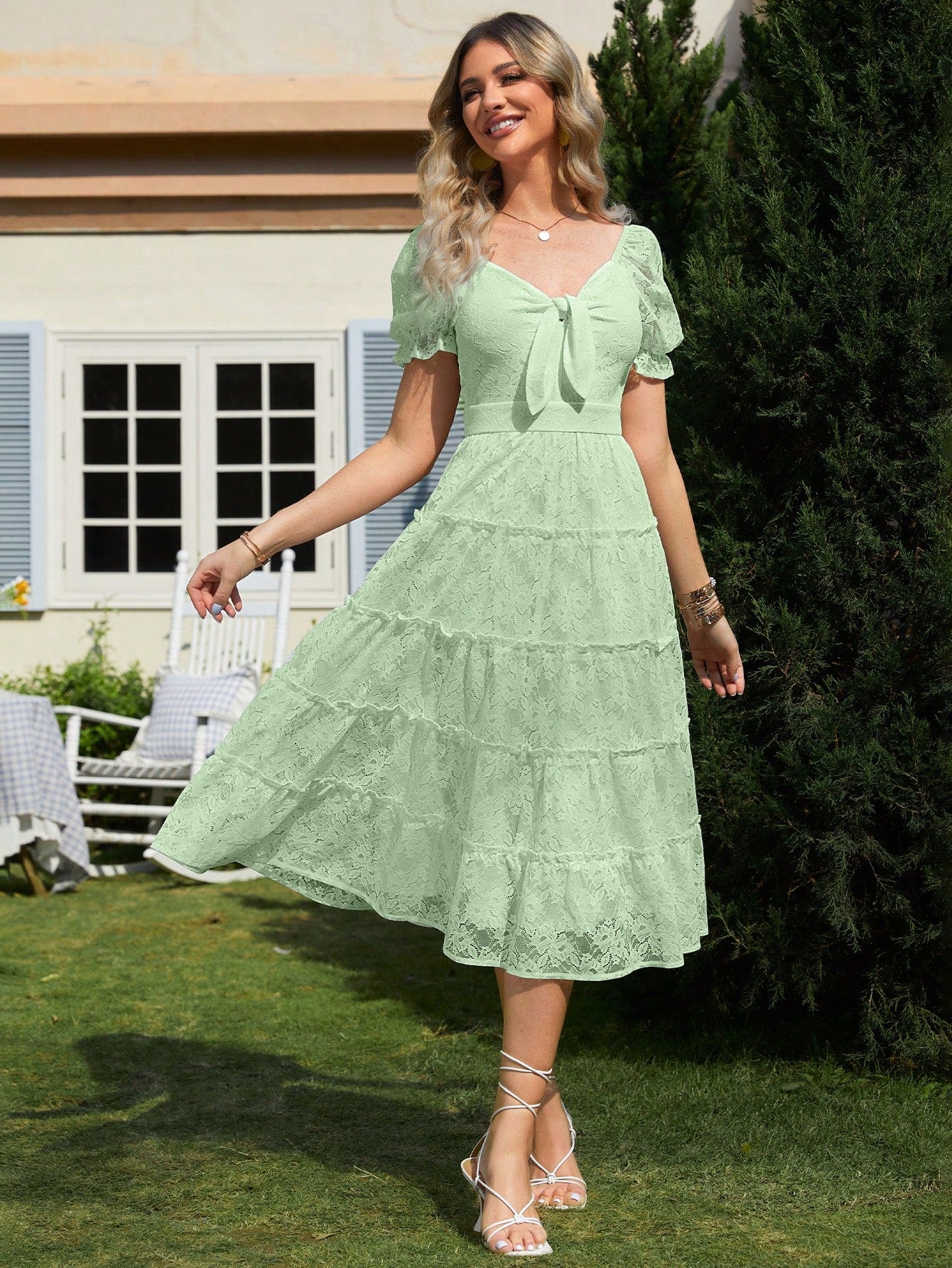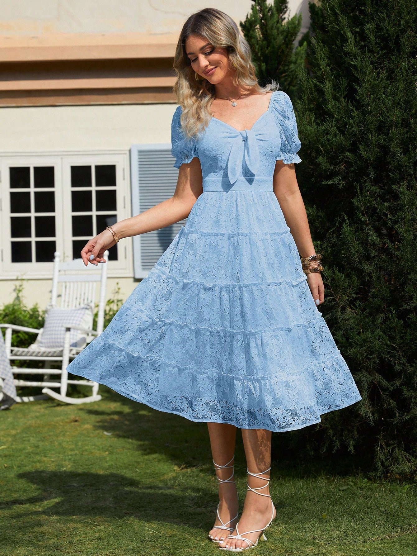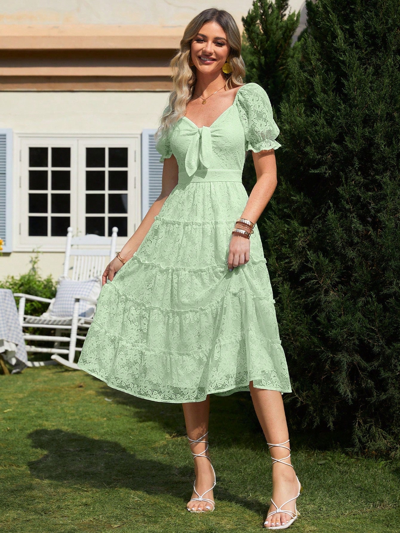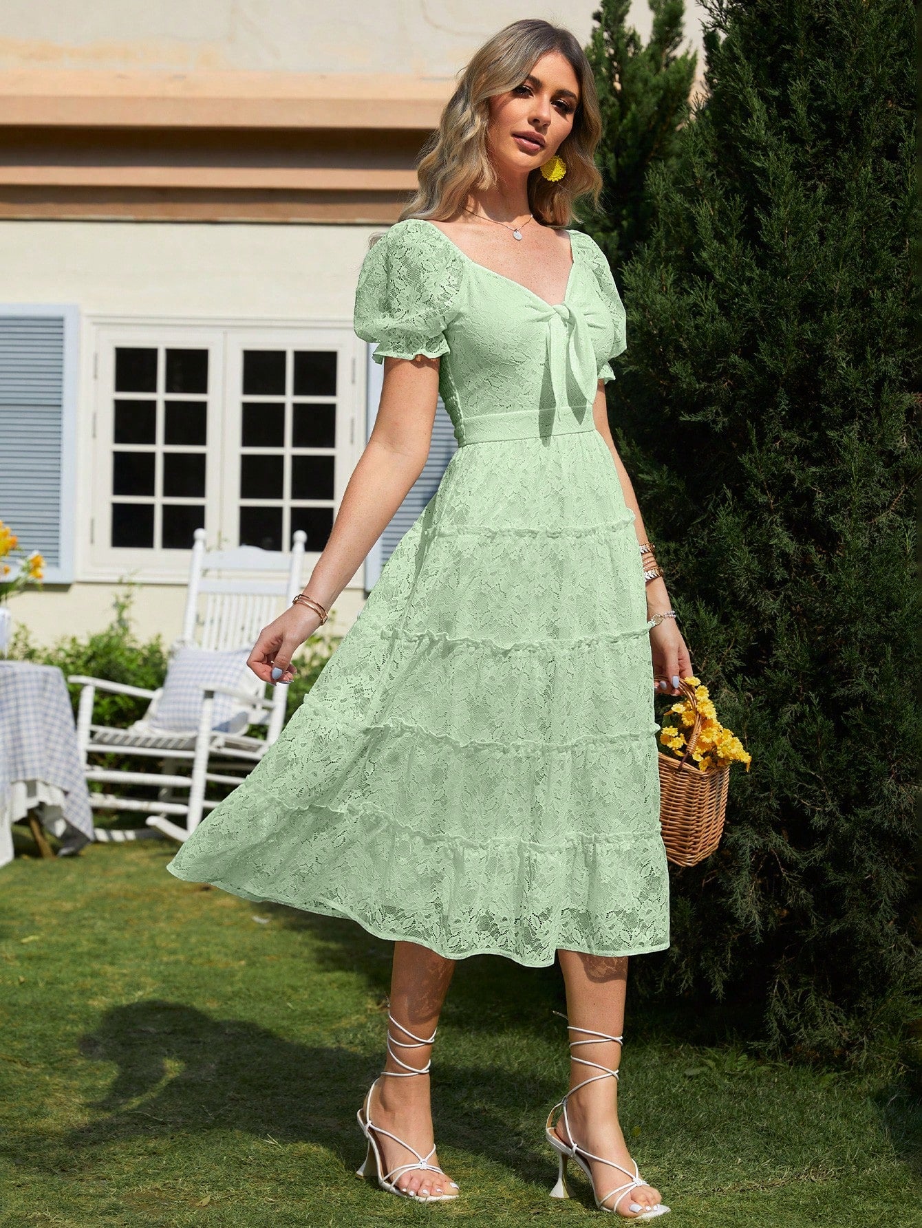 Lovely Lace: Sweetheart Neckline Dress with Front Tie
