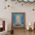 Luminous Abstract Christmas Tree Art Rendered In Faceted Crystal And Rainbow Colors Against A Sparkling Blue Radiating Background