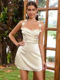 Luxe Elegance: Satin Cami Dress with Appliqué Detail