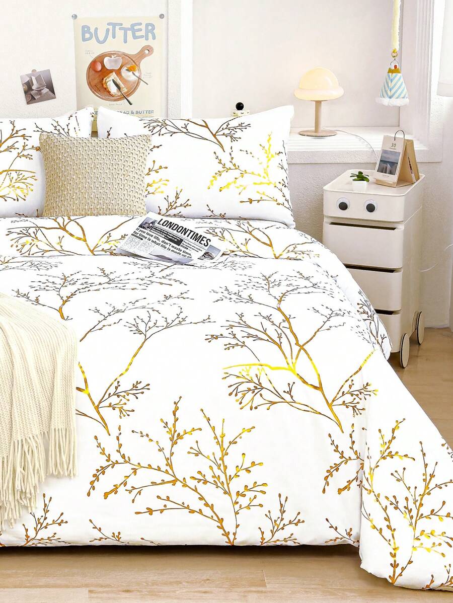 Luxurious Soft Golden Duvet Cover Set - High-Quality Bedding for Twin, Queen, and King Sizes(1*Duvet Cover 2*Pillowcases, Without Core)