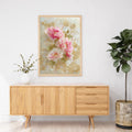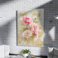 Luxury Pink Peony Flowers On Beige Marble Background Elegant Floral Oil Painting Wall Art