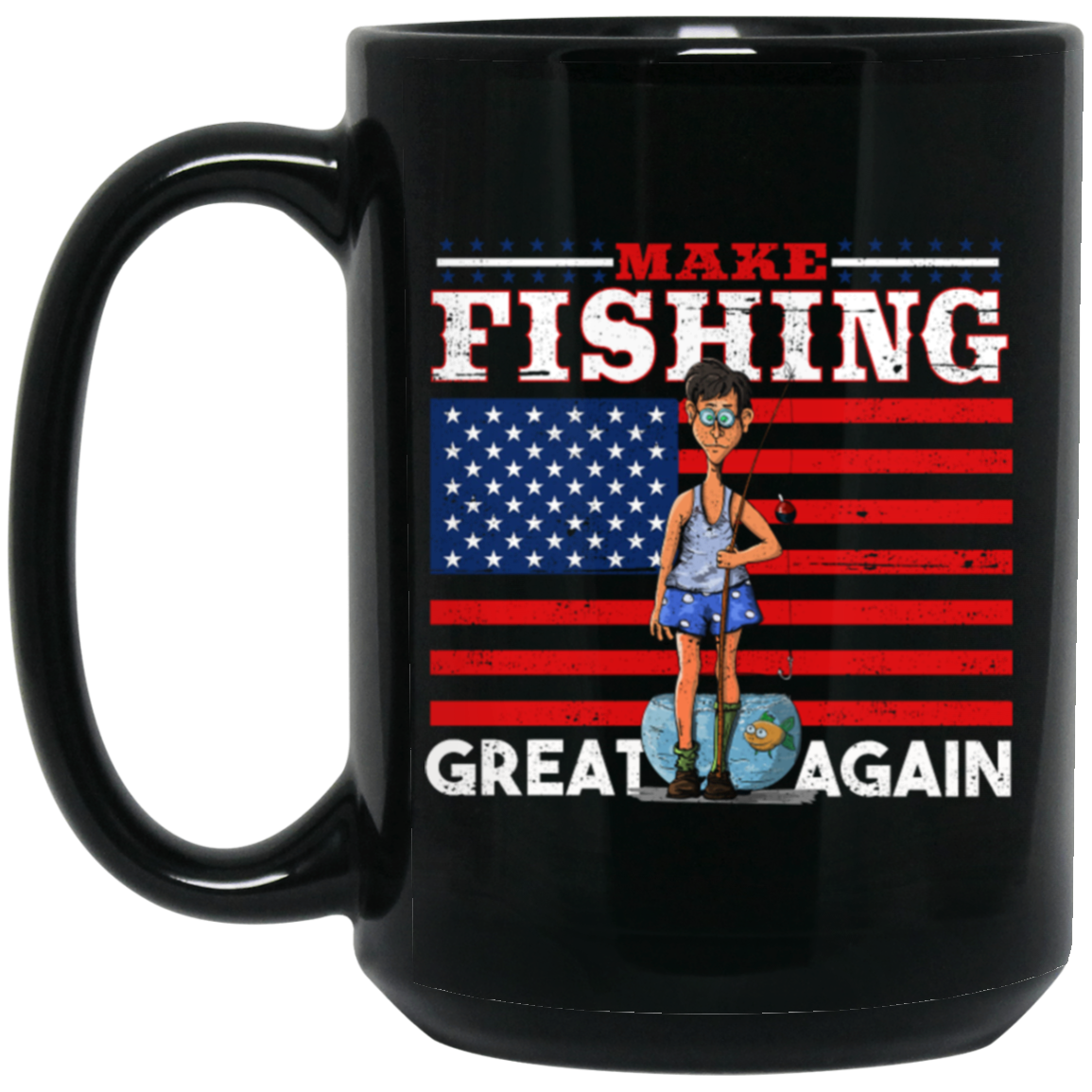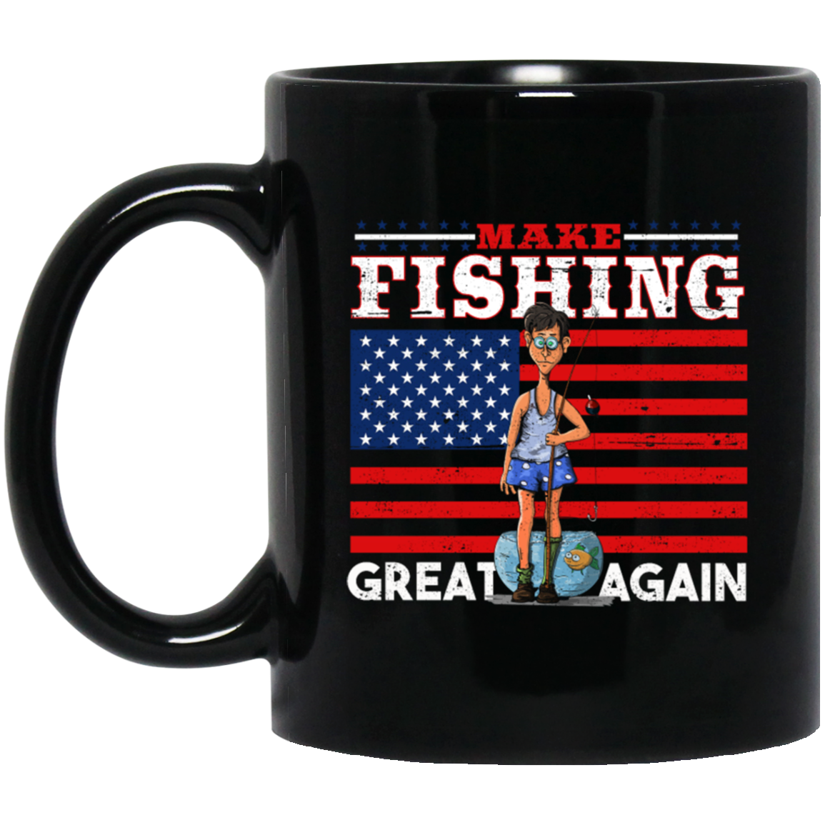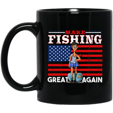 Make Fishing Great Again, American Flag, American Fisher Black Mug