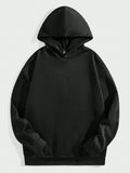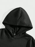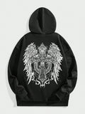 Men's Black Street Style Hooded Sweatshirt with Vintage Gothic Angel Wings and Cross Design