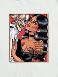 Men's Dark Cotton Graphic Tee with Skull Figure Design