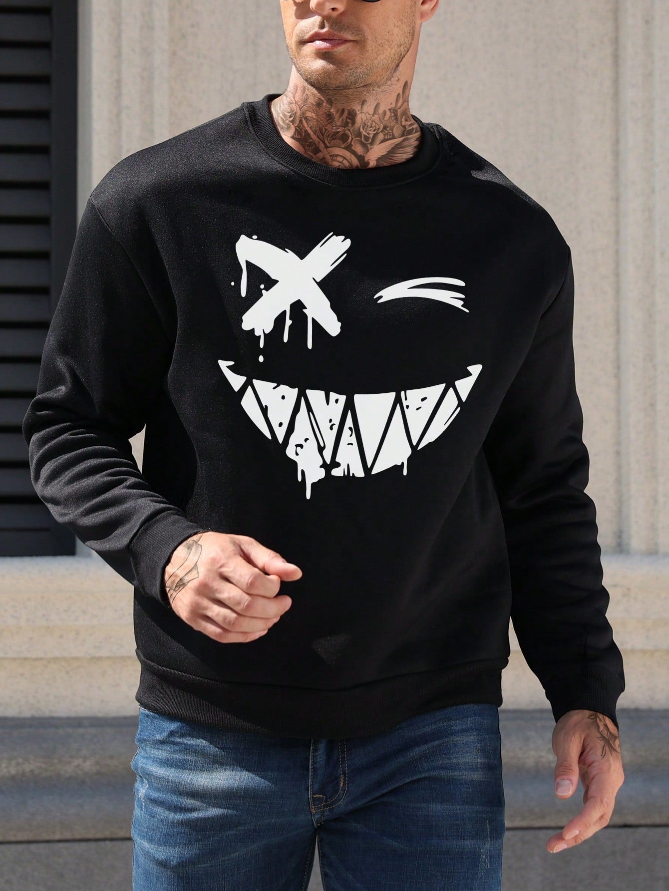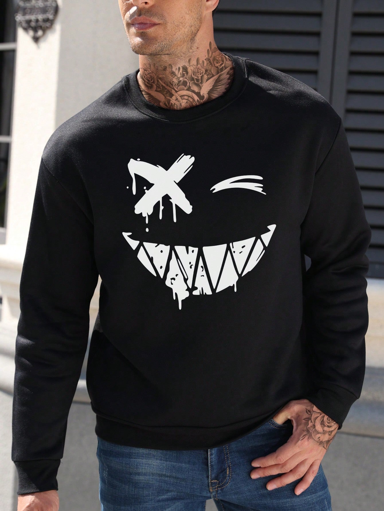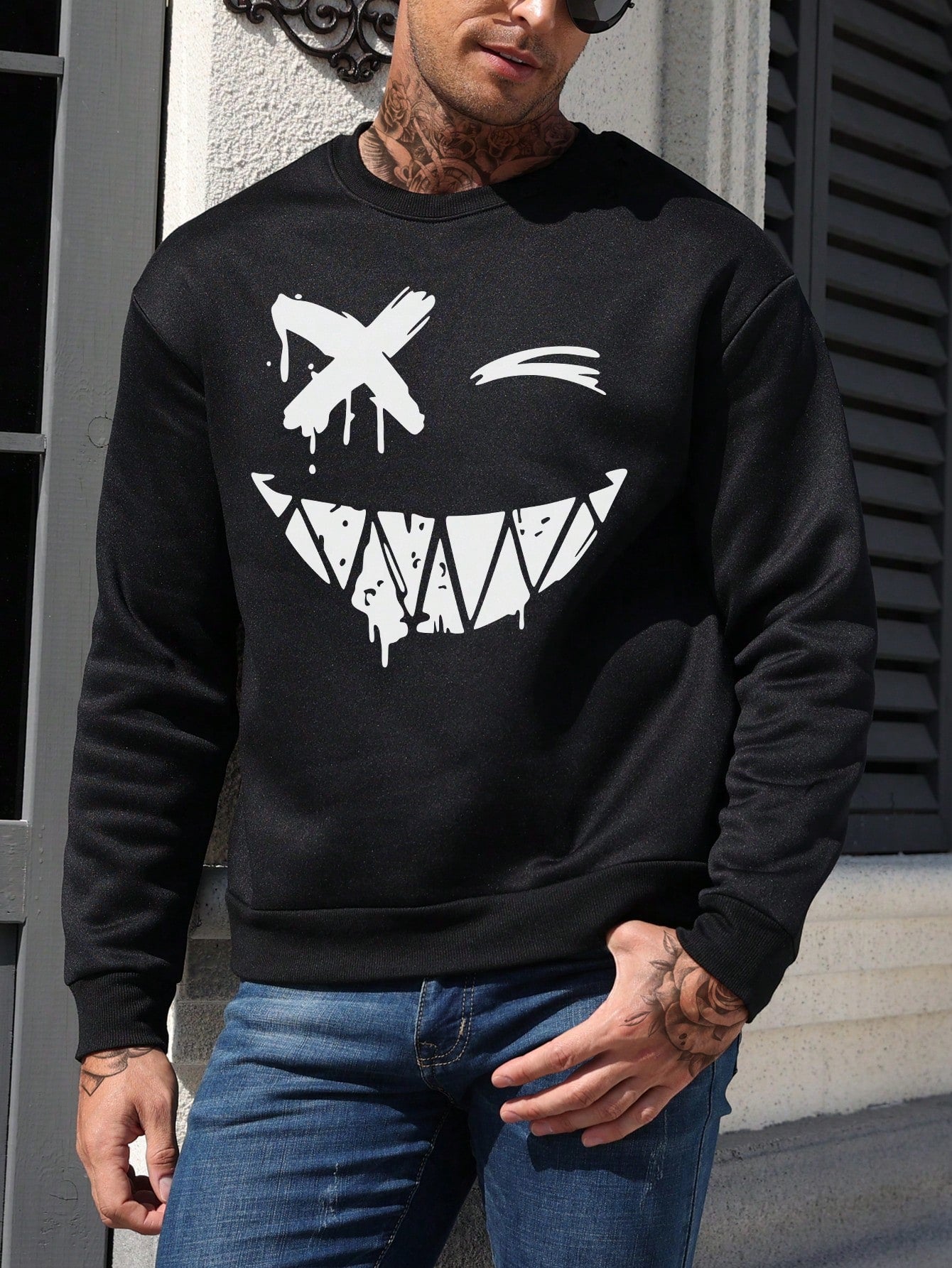 This men's sweatshirt is perfect for those who want to stay comfortable and stylish. With long sleeves and a fun emoji print, it offers both warmth and personality. Made with high-quality materials, you can count on its durability and comfort. Stay on-trend and cozy with this sweatshirt.