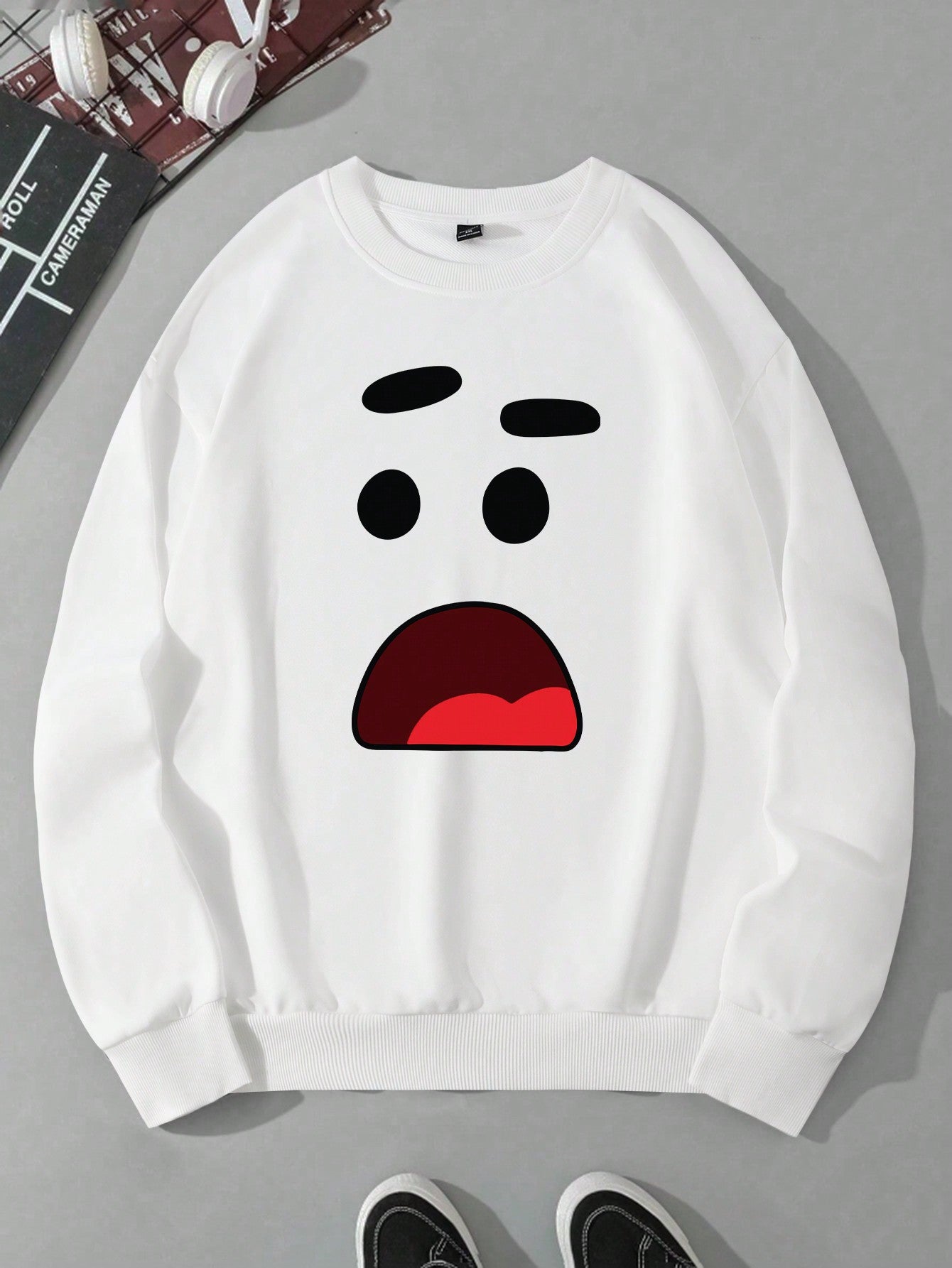 This men's sweatshirt features a unique expression print, perfect for adding some personality to your wardrobe. With long sleeves, it's a great choice for cooler spring and autumn days. Made from comfortable materials, it's a must-have for any fashion-forward man.